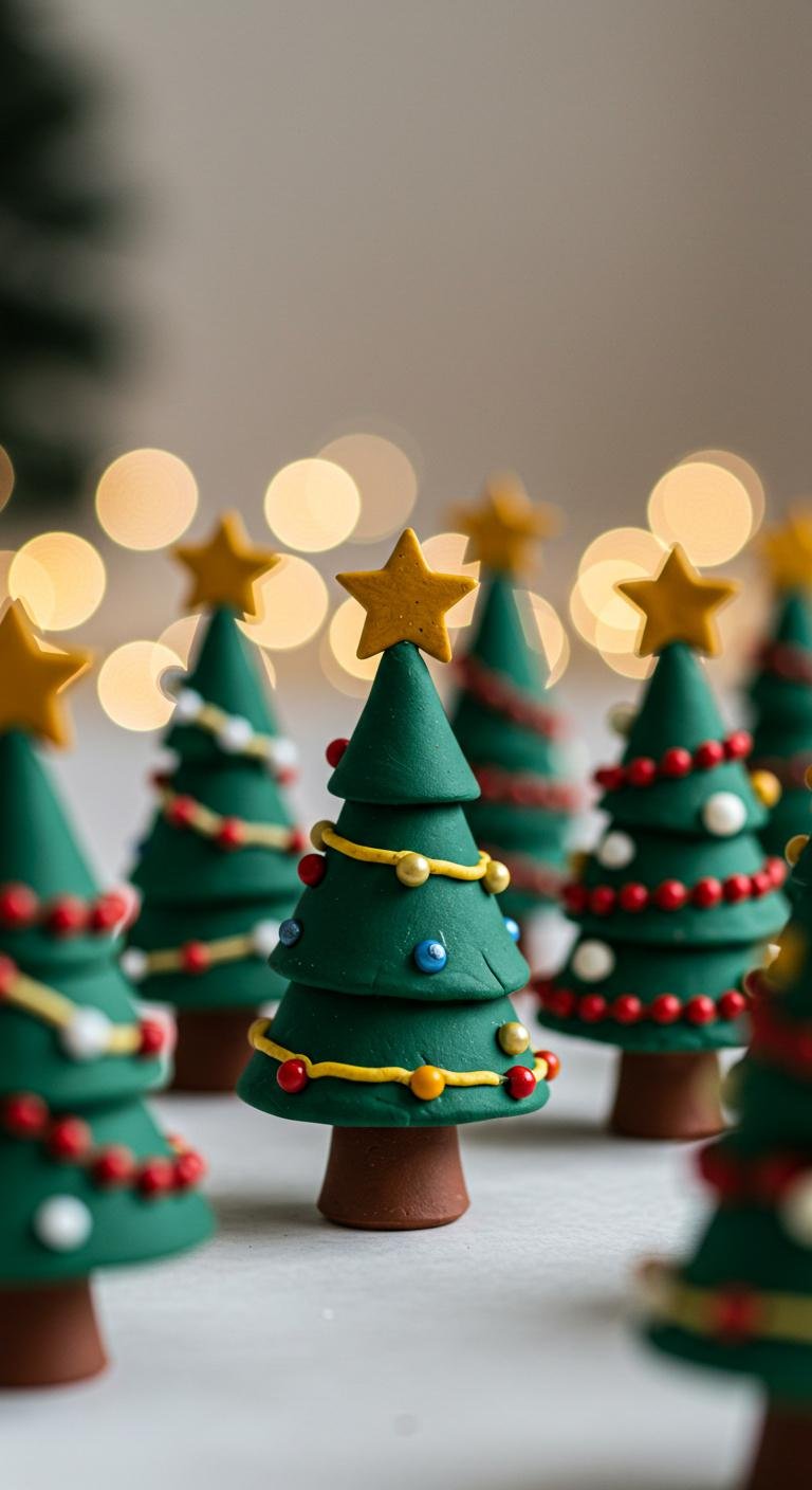 Miniature clay trees are absolute charmers for your holiday tablescape. Roll your oven-bake clay into little cones and bake according to instructions. Once they’re cool, get artsy: paint them and garnish with mini sequins or beads. A tiny dab of glue keeps everything put. These sweet trees add a festive focal point wherever you place them and make your gatherings feel extra special without costing a fortune.