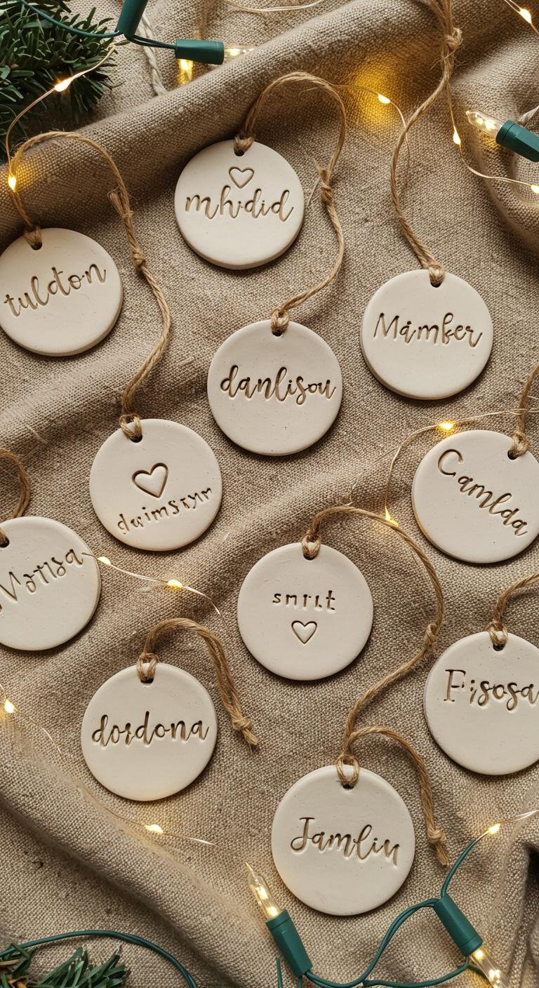 Want your ornaments to mean something more? Personalized clay ornaments do the trick. Roll out your clay, cut it into hearts, circles, or whatever shape you fancy, and press letter stamps in for names or little messages. After baking and cooling, paint or decorate them to match your style. These beautiful keepsakes make for meaningful gifts or special family mementos you’ll revisit year after year.
