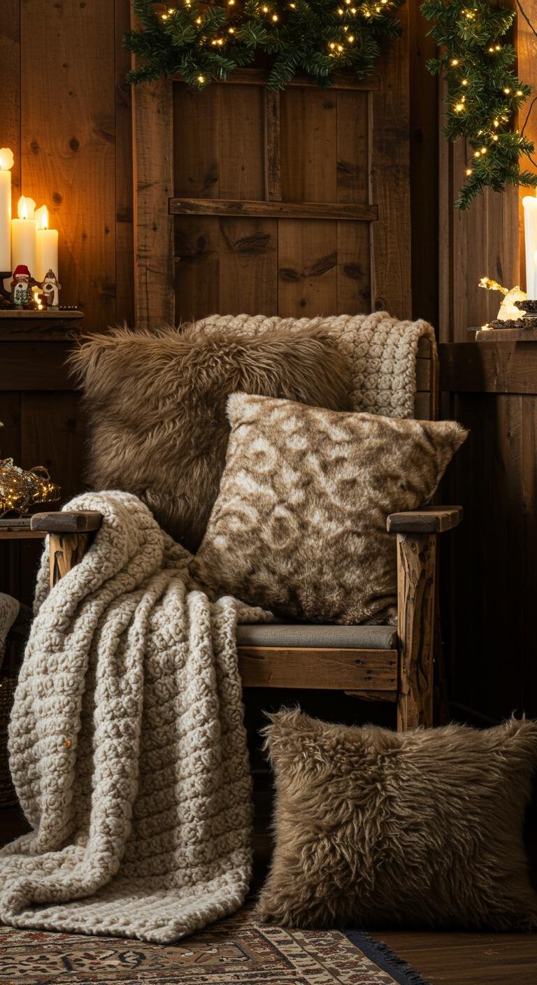 Nothing says cozy quite like faux fur. Throw some faux fur blankets or pillows over rustic chairs or your couch and suddenly the room feels so much warmer and inviting. You can find affordable faux fur remnants if you’re up for a little DIY or just pick some up ready-made. It’s an easy way to add texture and style to your holiday hangout without a ton of fuss or expense.