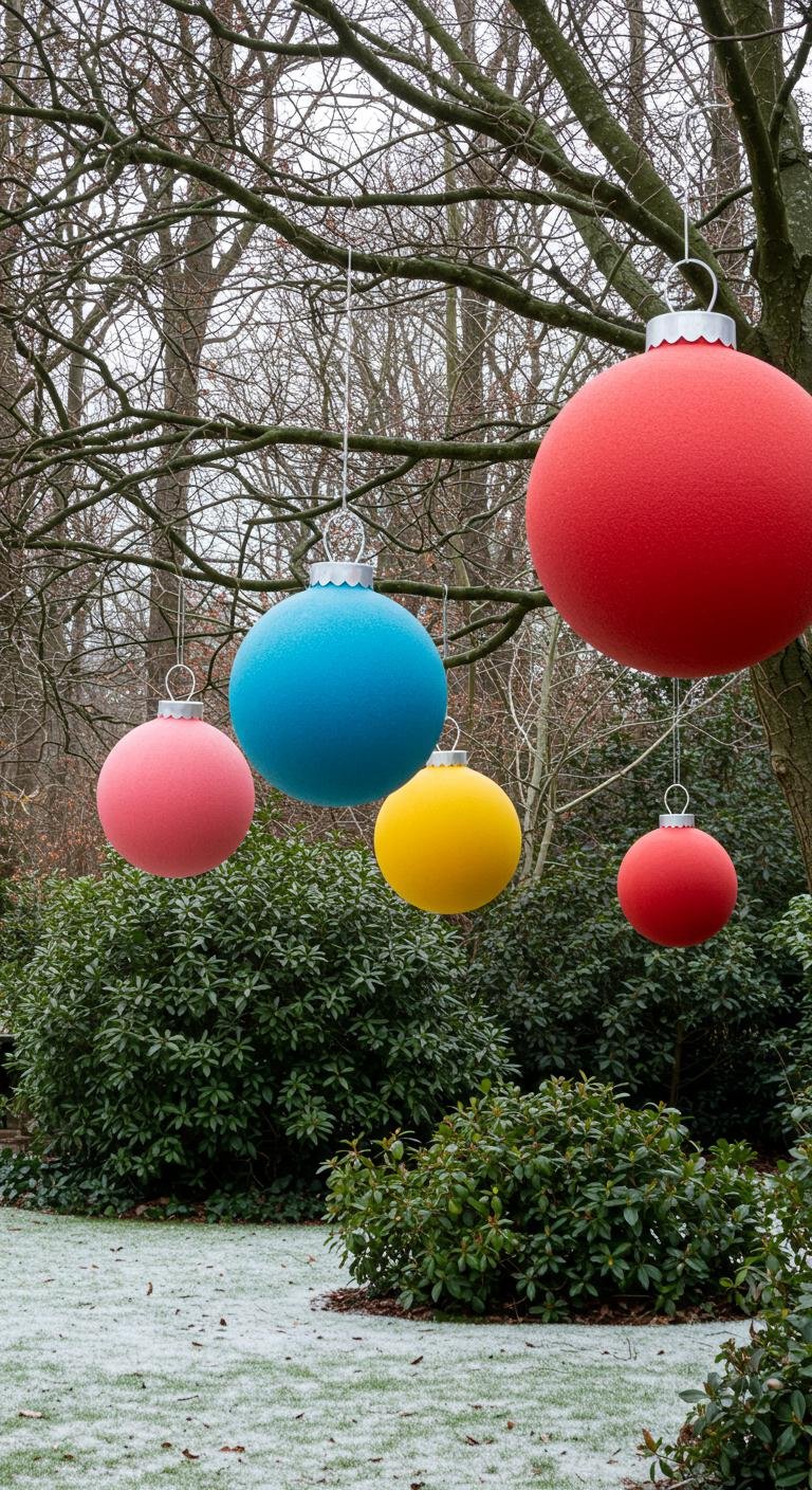 Want something that’ll catch everyone’s eye? These giant ornaments are made from pool noodles — yep, the swimming kind! Cut ’em into big loops or fun shapes, paint or decorate with patterns, and hang them from trees or scatter around your yard. They’re bright, playful, and a great project to get the whole family involved. Easy to make, easy on the budget, and guaranteed to spread smiles.