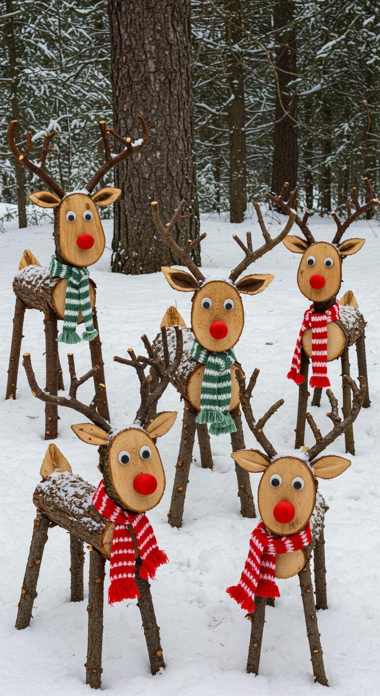 Who knew logs could be this cute? Cut some into different lengths to make the body and head, then use twigs for antlers and paint on a sweet little face. Throw on a scarf made from leftover fabric and you’ve got yourself some rustic, heartwarming wooden reindeer to pop near your fireplace or out in the yard. It’s a great way to repurpose fallen branches and add some rustic holiday spirit around the house.