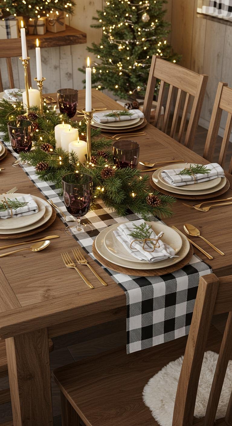 Buffalo check print feels like a warm hug, especially during the holidays. You can make a simple table runner by cutting fabric in your favorite pattern — leftover flannel shirts work great, too. Minimal sewing needed here; just fold and secure edges. Plop it down on your table, and dress it up with some evergreen branches, pinecones, or even seasonal fruits. It’s a subtle way to add that cozy, rustic charm to your dining setup without breaking a sweat (or the bank).