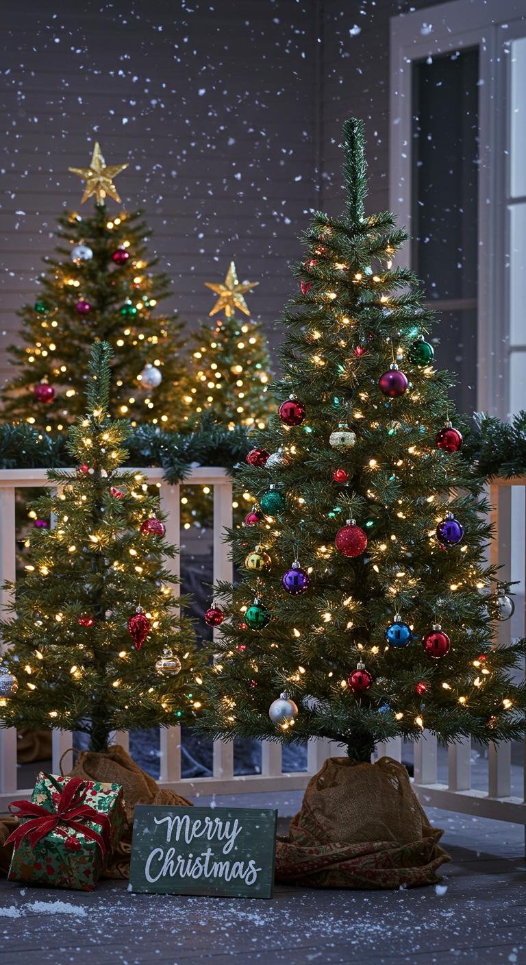 For a quick but stunning centerpiece, pre-lit Christmas trees are where it’s at. Toss them in cute pots or woven baskets, and you’ve got instant porch magic. Mix and match heights for some visual interest, and pick weather-resistant ones to keep things looking good season after season. Short on prep time? You can grab these beauties at most local stores, with plenty of sizes and colors to suit your vibe.
