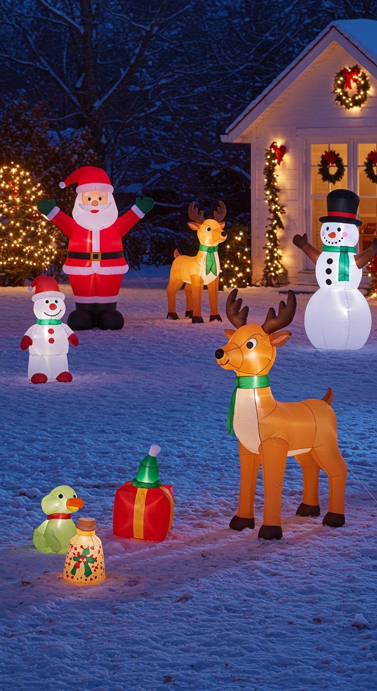 For an easy and fun pop of holiday spirit, try out inflatable yard decorations. From Santa to snowmen, these blow up in seconds and bring a playful vibe to your porch and yard. They’re low maintenance and usually affordable, just make sure you have a nearby power source for plugging them in. Perfect for lighting up your home during those chilly nighttime festivities!