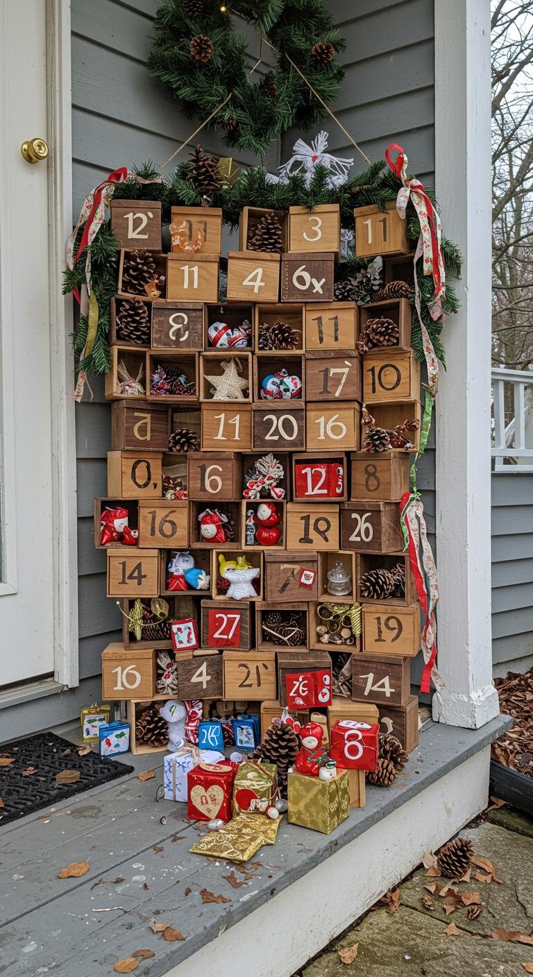 An advent calendar isn’t just for indoors! Making an interactive one for your porch using small boxes or drawers filled with tiny treats adds excitement to the countdown. Display it where everyone can join in, and watch as family and visitors enjoy the daily surprise. It’s a creative and joyful way to share the holiday spirit together!