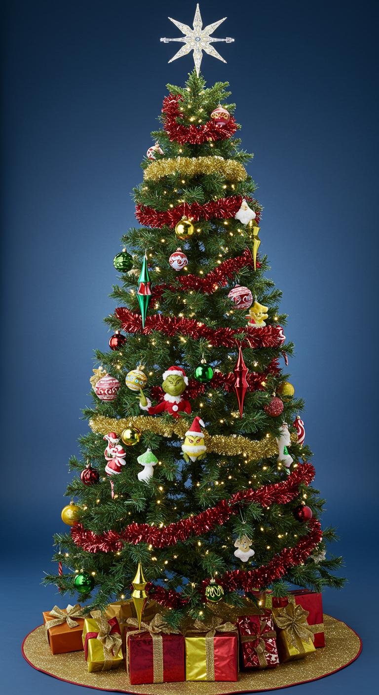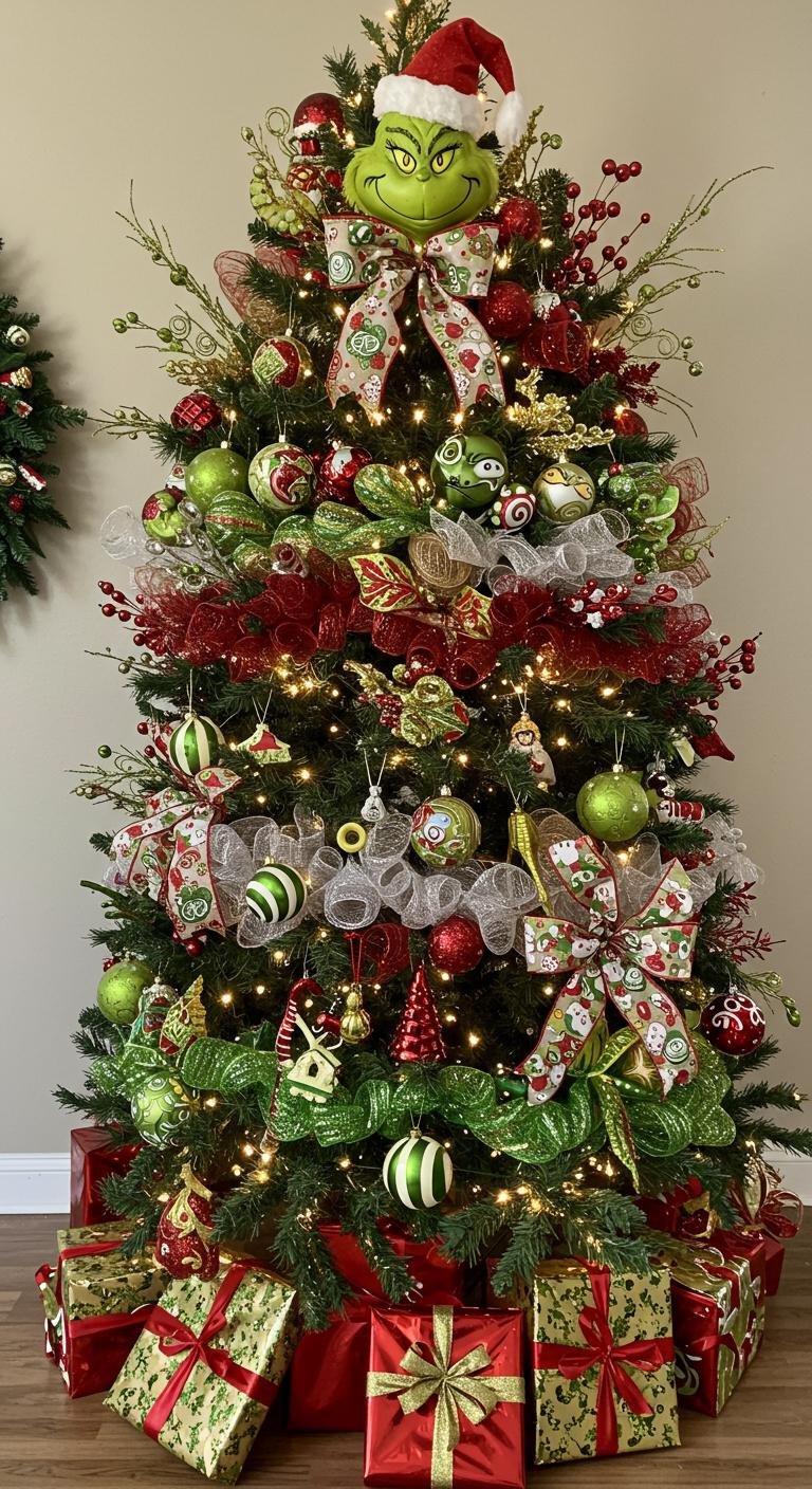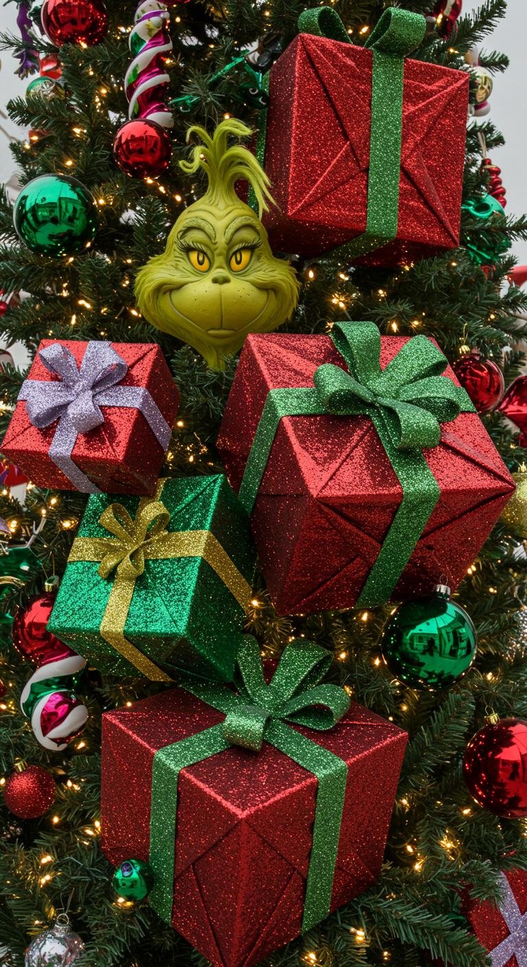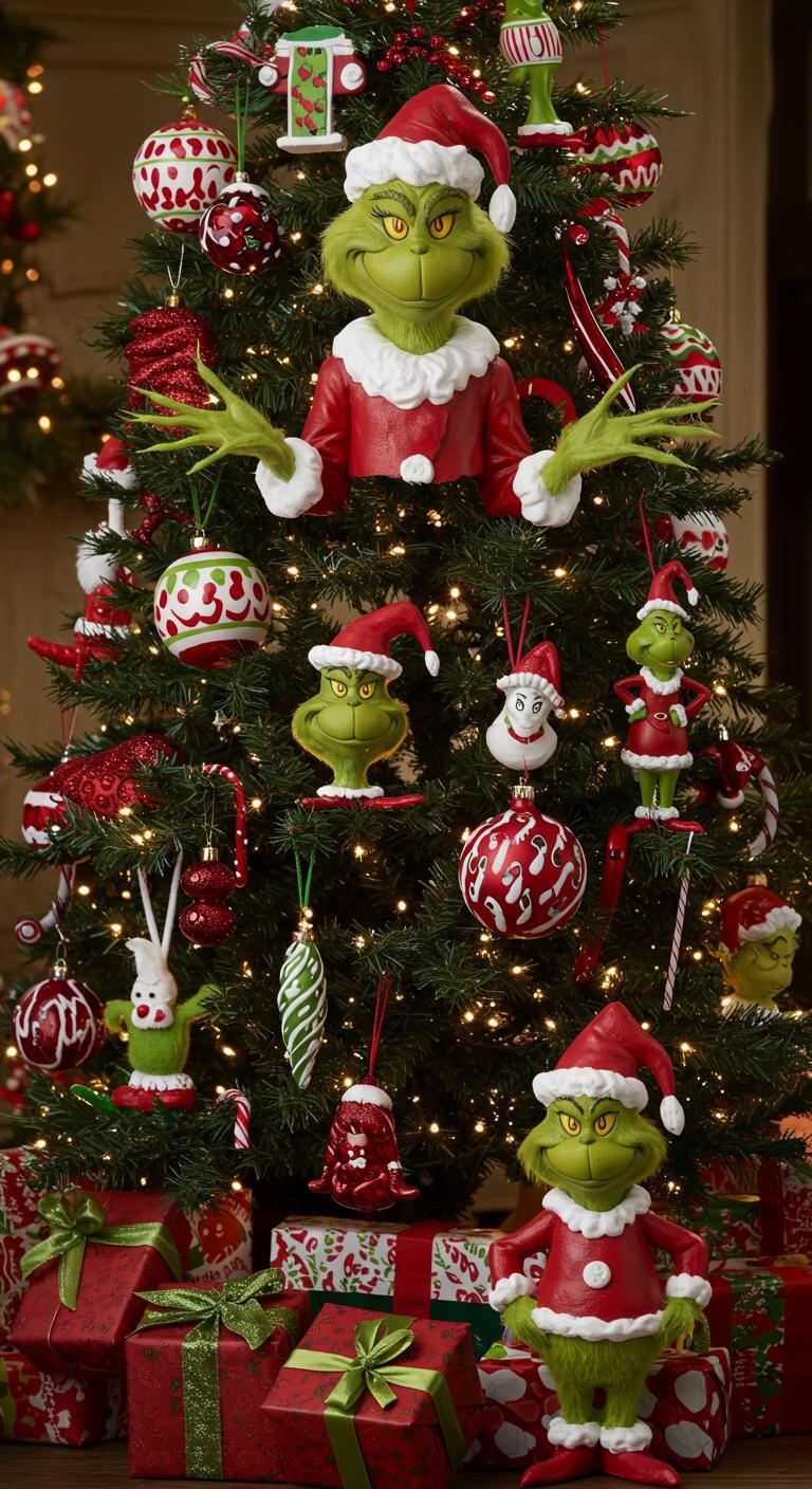 Of course, the defining color of your tree has to be that iconic Grinch green. Use it as your base and then sprinkle in reds and whites to keep it festive. Playing with different shades of green adds dimension and richness to the overall look. If you wanna go thrifty, hunt for green fabric scraps or thrift store finds to sneak in as unique decorations.
