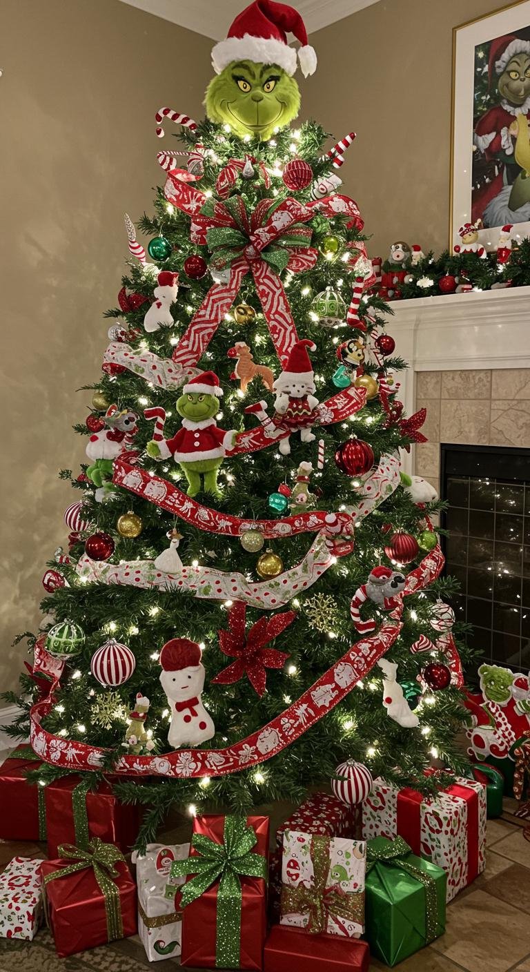 Adding a mix of large and small ornaments really makes the tree pop. Grab bold, oversized balls in classic Grinch colors — greens, reds, and whites — and place them strategically to hide spots where your ribbons might overlap. Then, fill the gaps with smaller ornaments to keep everything balanced and lively. And here’s a fun twist: paint your own clear glass or plastic balls in festive colors for a cute family project that doubles as decorations!