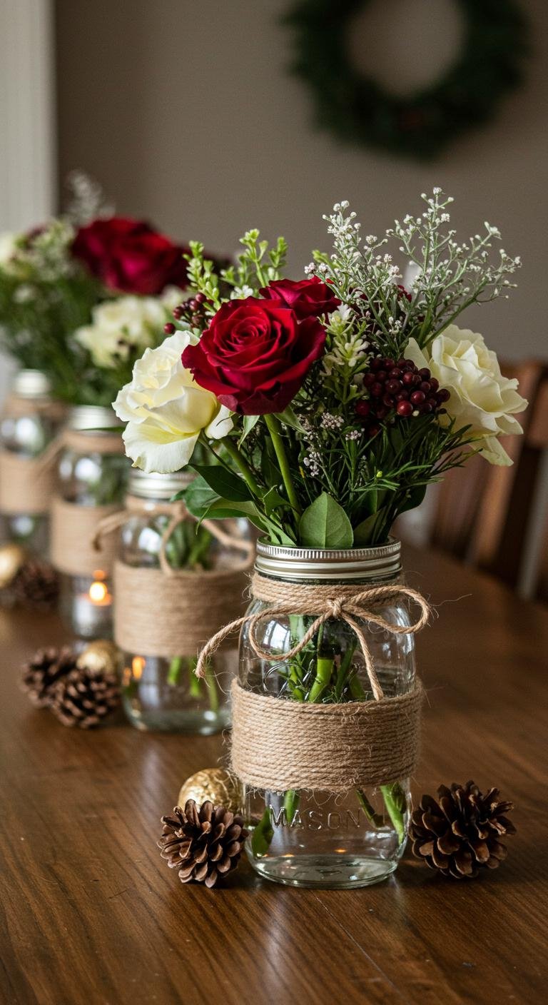 Transforming your home into a cozy holiday haven is easy with rustic mason jar flower vases.