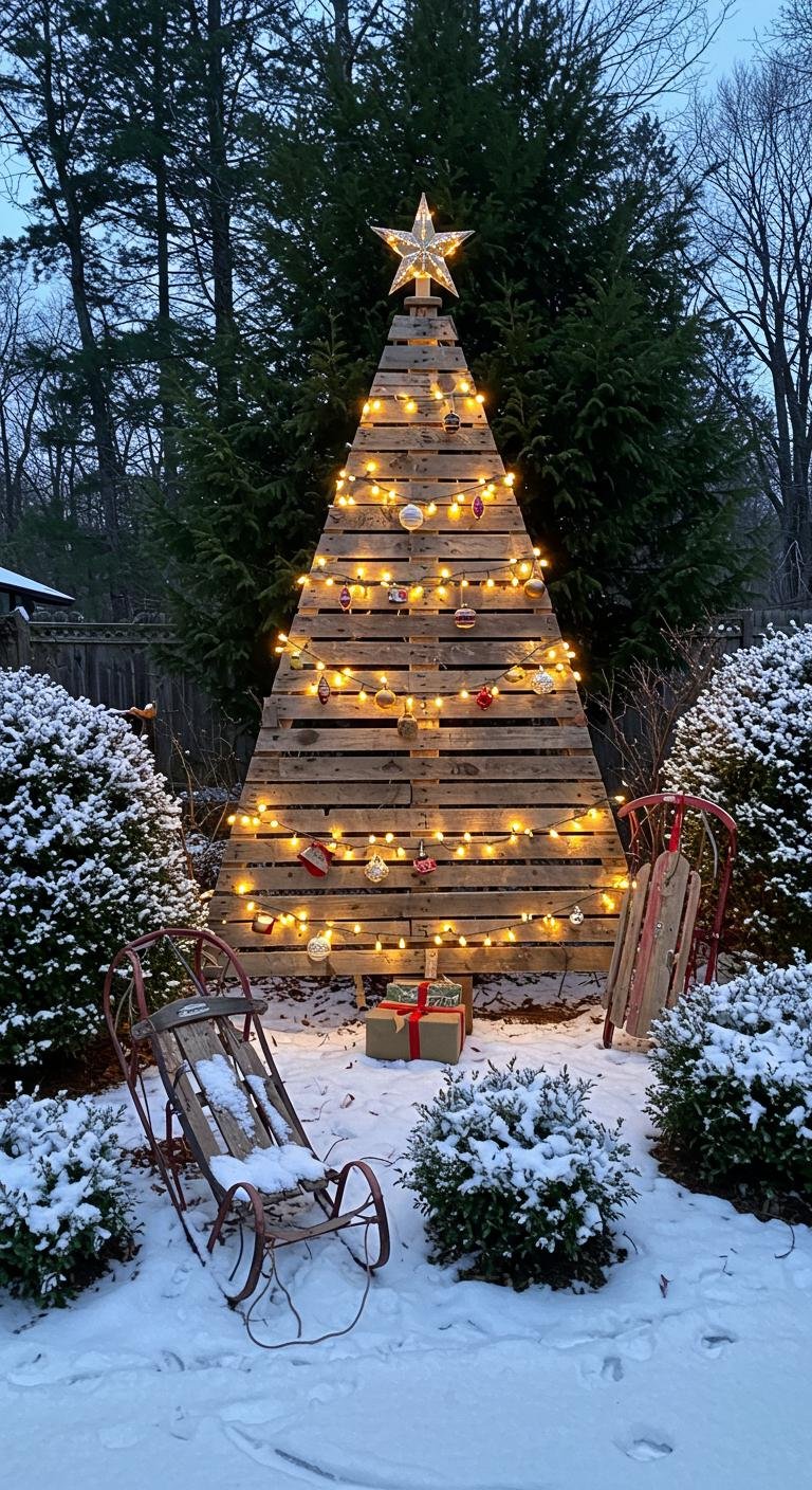 Crafting a Christmas tree out of reclaimed pallet wood is such a cool way to add rustic charm to your yard. All you really need are some old pallets, nails, and basic tools. Just break down the pallets, cut the wood into triangle shapes to create a simple tree silhouette, then nail everything together. You can go classic by painting it in festive colors or keep it natural for that earthy vibe. To jazz it up a bit, try hanging some affordable ornaments or wrapping string lights around the tree. The best part? This whole project can come together for less than $50 — a total win if you ask me.