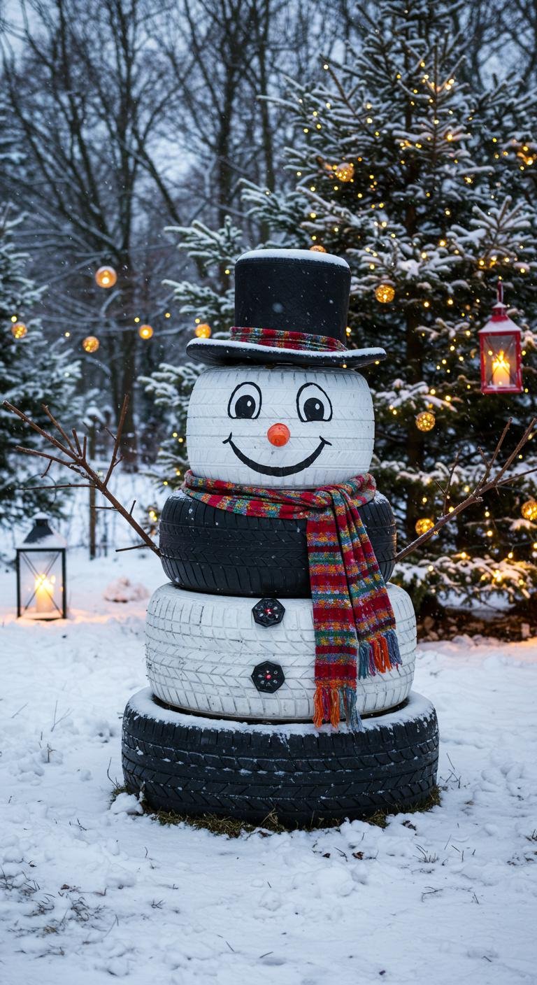 Who knew old tires could look so festive? Stack three tires of different sizes to create a snowman, then paint them white or leave them with a more natural look for something a bit quirky. Use spray paint to add eyes, a nose, and a smile, bringing your snowman to life. For personality, wrap a scarf made from an old sweater around its neck and fashion a hat out of cardboard or even a flower pot. This eco-friendly project is not only adorable but also super affordable, coming in under $30 if you get creative with materials.