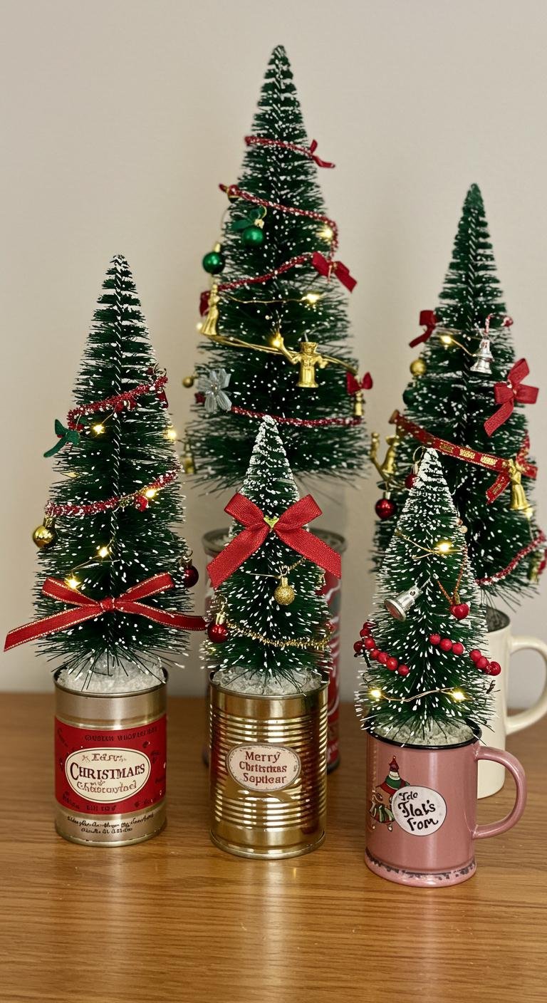 If you’re tight on space but want all the festive feels, mini Christmas trees are your best friends. You can pick up small artificial trees or DIY one using a cardboard cone covered in green tissue paper. Deck them out with tiny DIY ornaments, like painted pinecones or little paper stars. Bonus tip: use everyday things like old mugs or baskets as quirky little planters to hold these cuties.