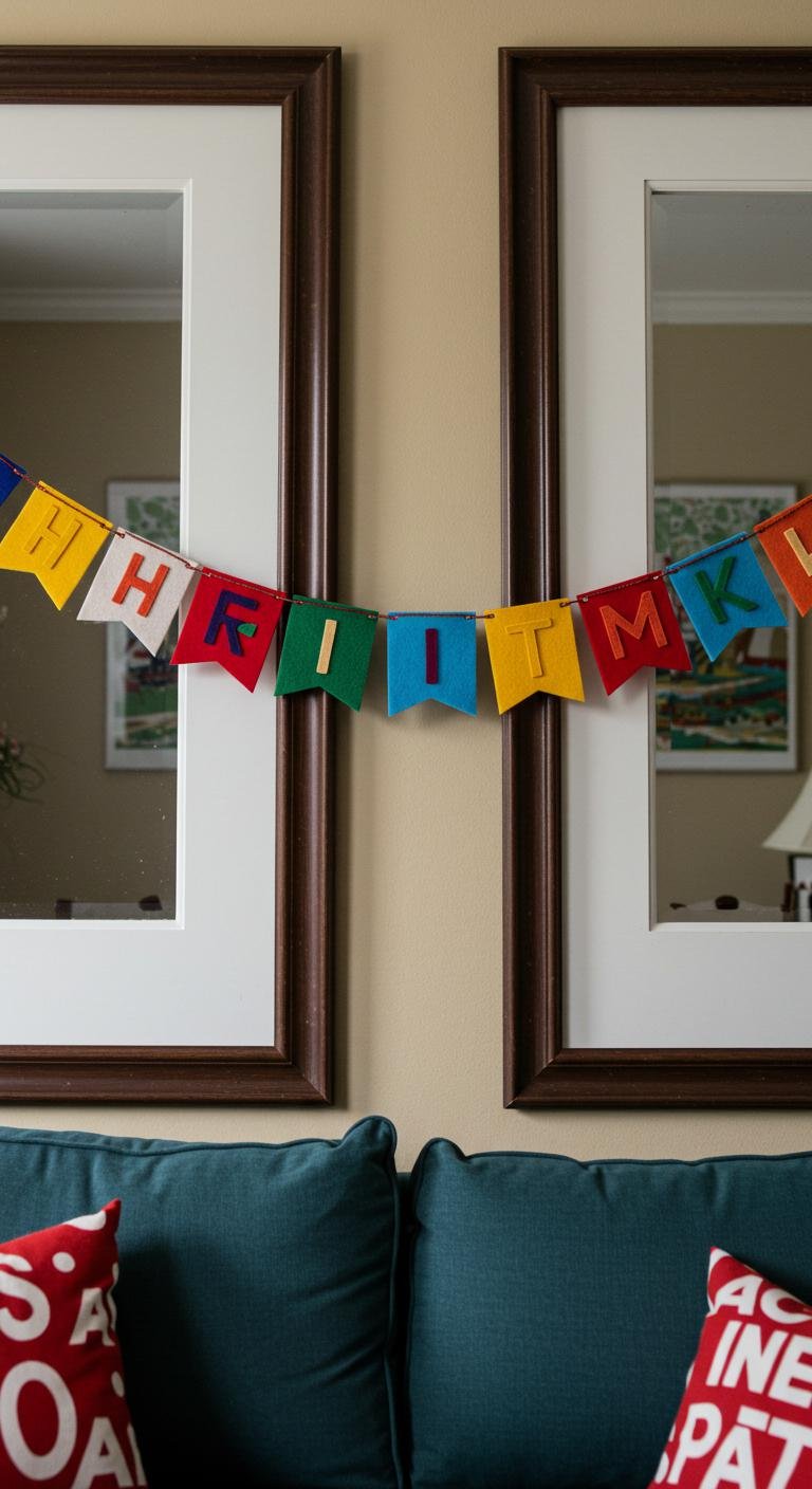 A DIY holiday banner is such a simple way to brighten up walls or mantels. Take some felt or any leftover fabric scraps and cut out the letters for cheerful messages. String them up with twine or ribbon, and you’ve got a cute, personal touch. Bonus: using scraps means it’s not just budget-friendly but also a great way to reduce waste and get creative.