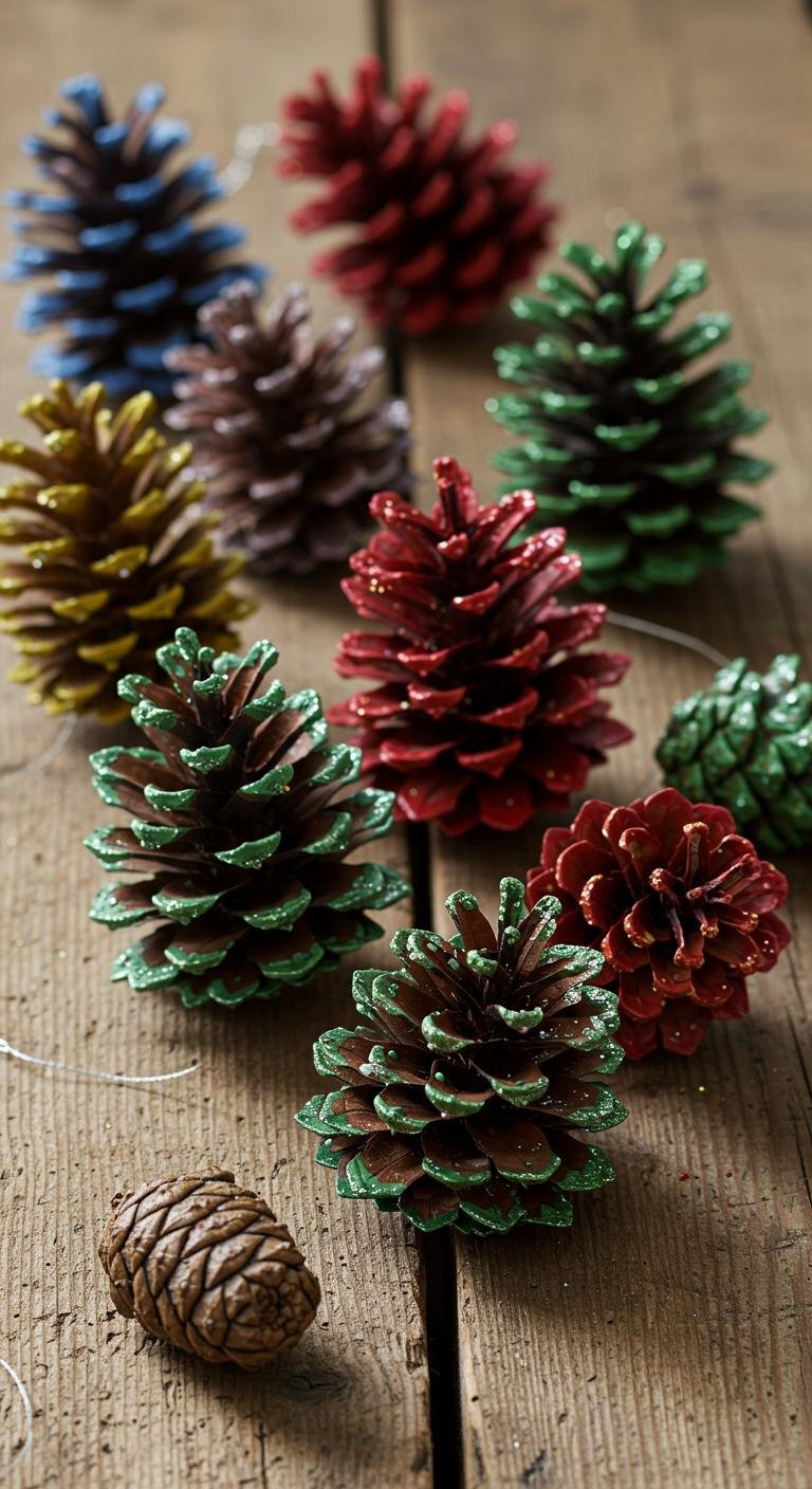Grab some pine cones from your backyard or local park and give them a festive makeover with paint in classic holiday colors like red, green, or gold. Sprinkle on a little glitter to catch the light, attach a ribbon, and suddenly you’ve got the easiest, prettiest rustic ornaments that remind you of fresh pine forests.