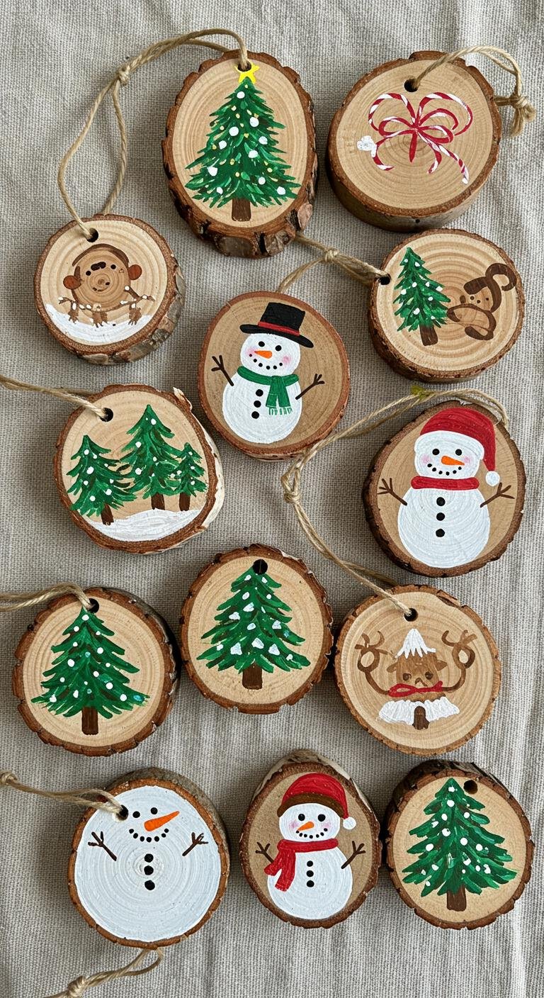 Wood slices bring a seriously warm and earthy feel to your tree. You can pick ’em up at craft stores or find some branches outside and slice them yourself if you’re feeling adventurous. Paint your favorite designs or stamp on intricate patterns, then seal the masterpiece with clear coating so it lasts holiday after holiday. Drill a tiny hole at the top, thread some twine, and you’ve got a keepsake ornament that feels like a little piece of nature inside your home.