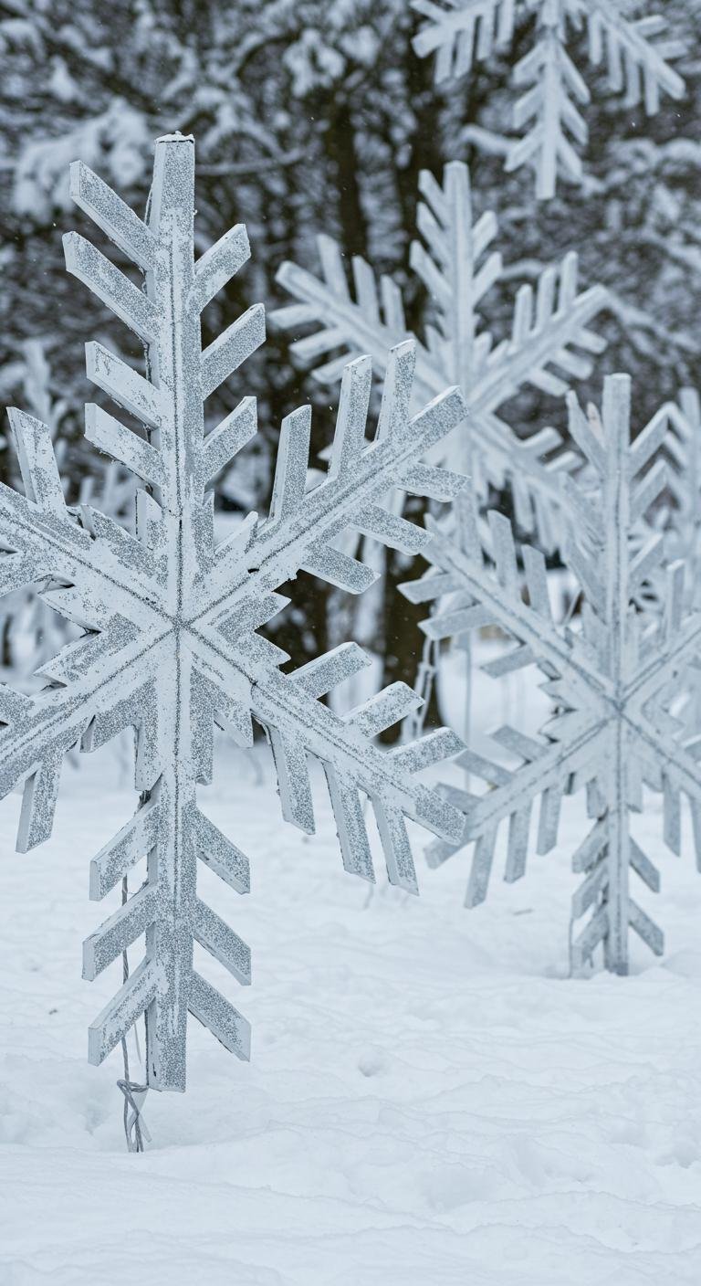 Okay, hear me out: snowflakes from old tires. It sounds wild, but it’s such a cool way to reuse something tough and sturdy. Just cut those tires into snowflake shapes using a utility knife, then paint them white for that classic frosty look. Hang them up in trees or sit them in your garden beds. They’re surprisingly durable and add a really unique, playful vibe without costing more than a bit of paint.