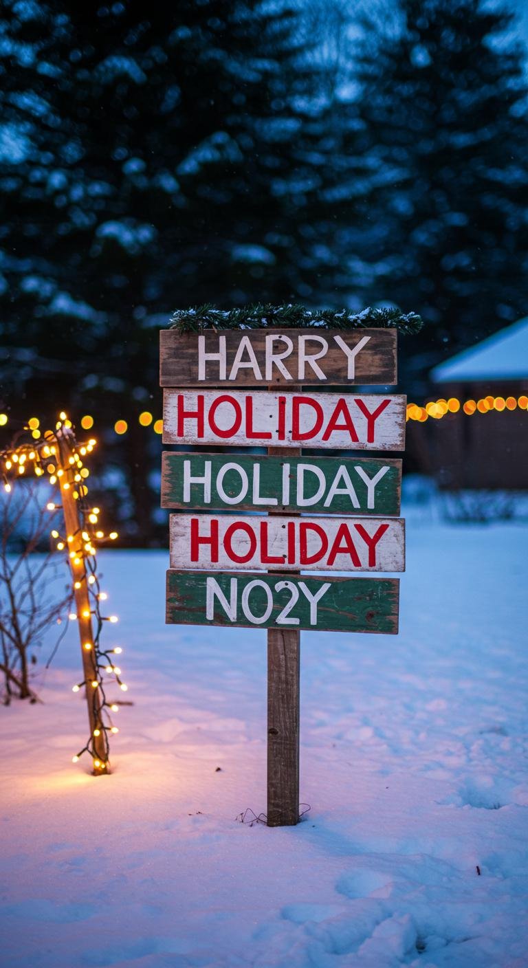 Want to personalise your greeting? A holiday message sign made from reclaimed wood or pallets is an easy and charming way to do it. Paint your favorite festive phrase or even your family’s name in bright colors, and you’re set. It’s a simple project with tons of character and doesn’t take much to pull off. Position it by your front door to spread warm vibes as soon as guests arrive.