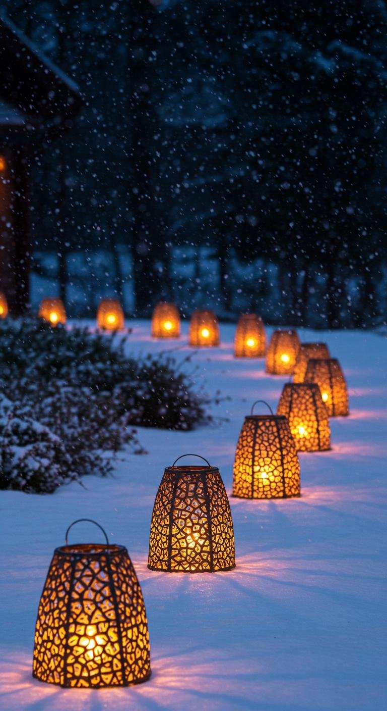 Who doesn’t love mason jars? These little gems can turn into enchanting lanterns that add just the right ambiance outside. Fill them with battery-operated string lights (so safe and hassle-free), screw the lids on tight, and jazz them up with festive ribbons or twine for that rustic touch. Hang them from tree branches, line your pathways, or cluster them on a table—the glow is seriously dreamy. And here’s the best part: if you already have old jars, this barely costs a thing! You can even paint wintery designs on the glass to sophisticate the look. Perfect for lighting up those chilly holiday nights or for cozy gatherings!