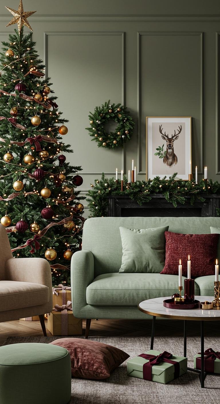 Bringing in autumn tones like burnt orange and warm browns alongside your usual greens amps up the cozy vibes. DIY centerpieces with fall leaves and mini pumpkins, or go faux floral for a no-fuss option. This mix slays the transition between Thanksgiving and Christmas, giving your space a unique seasonal twist that feels fresh and festive.