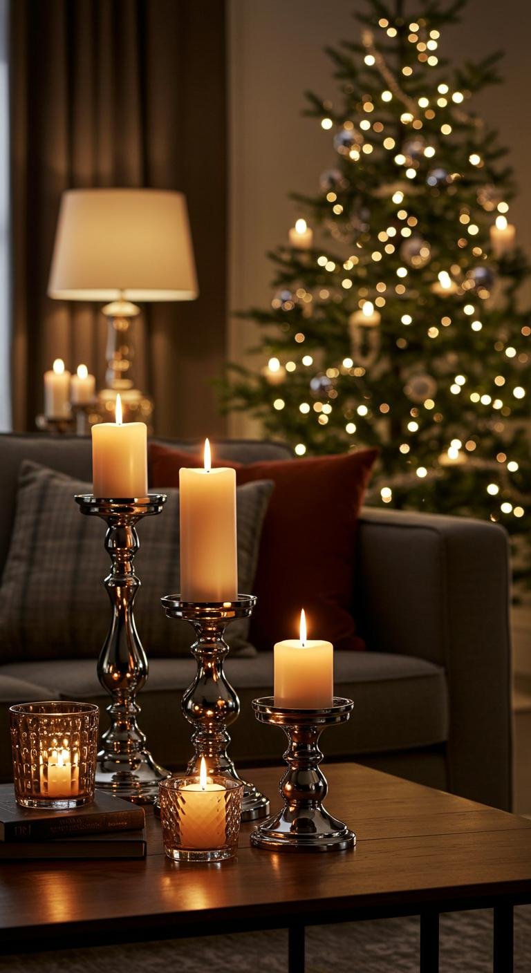 Candlelight is such a simple way to create a cozy, sophisticated vibe. Try mixing candle heights on trays or tables, and go for scented ones with festive aromas like cinnamon or pine. Feel like getting crafty? Making your own candles with jars and wax adds that perfect personal touch. They’re little beacons of warmth that really invite all the holiday feels.