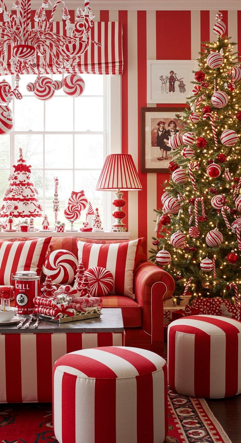 If you want to add a playful pop, stripes are your friends. Candy cane-inspired patterns in classic reds and whites look effortlessly chic. Grab some striped pillows or table runners, or get creative and make your own striped baubles with paint or washi tape. This vibe nails the balance between fun and sophisticated—giving your room some spirited charm without going overboard.