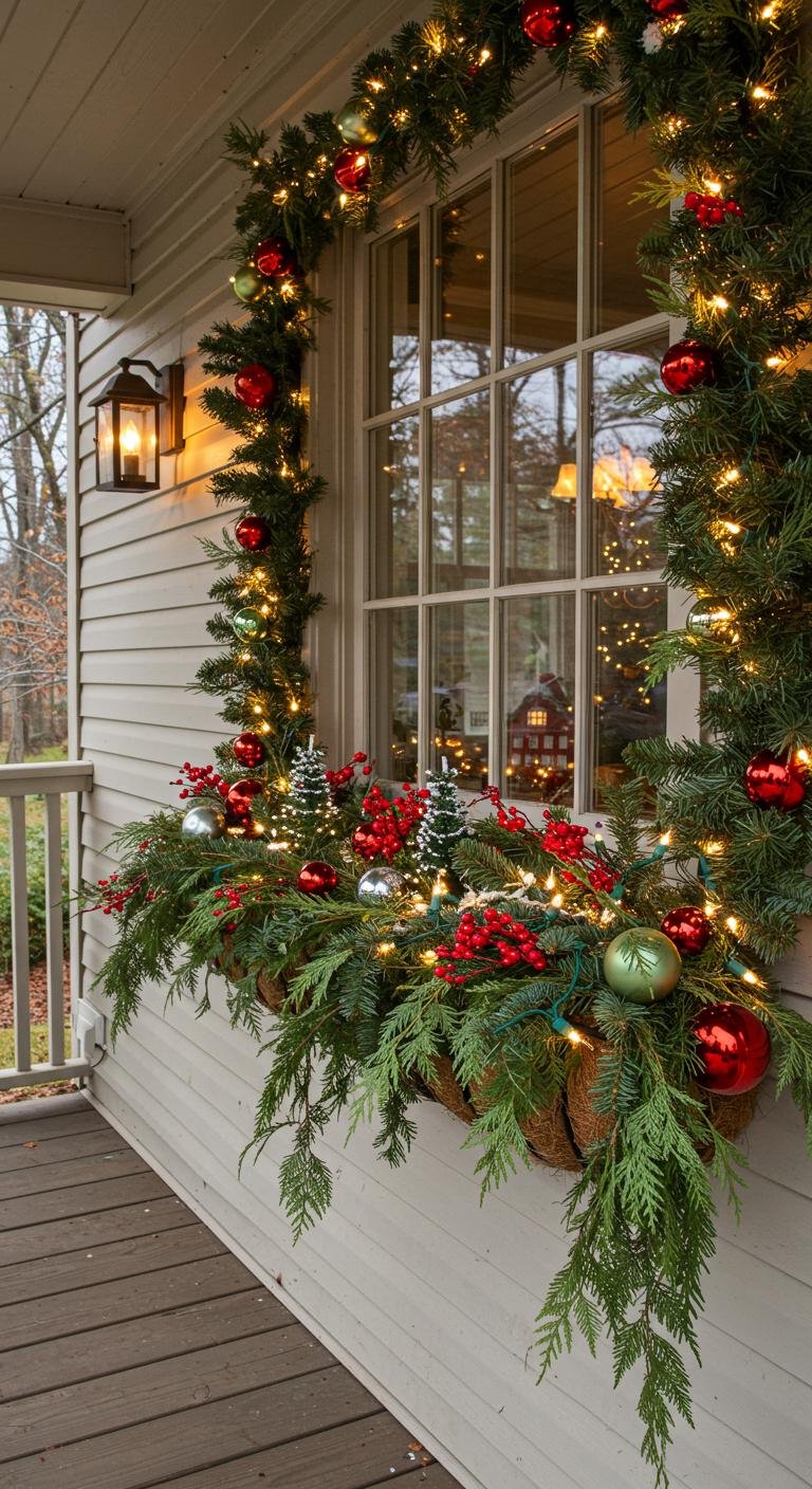Window boxes aren’t just for flowers—they’re perfect for packing in Christmas greenery, pinecones, and bright red berries. These little displays catch the eye and add charm right at face level. If you want to save some cash, DIY boxes from reclaimed wood can be just as stunning and full of character.