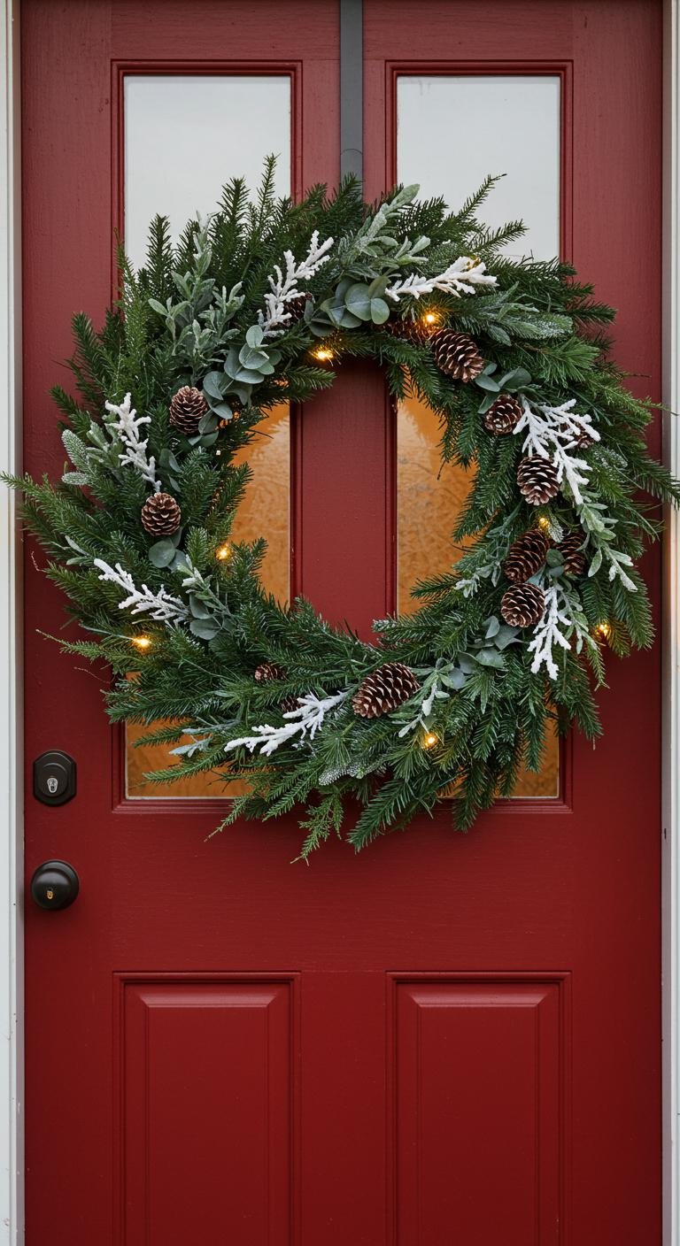 There’s just something about an oversized wreath that screams holiday wow. Think really big—like 5 to 10 feet wide—to give your front door that jaw-dropping effect. Go for faux evergreens that can brave the winter weather, and add little pops of champagne or winter white hues for some classy sparkle. If you’re up for a DIY, grab a sturdy wire frame and wrap it with greenery, then toss on pinecones, berries, or colorful ornaments to make it totally your own. It’s such an elegant touch that still feels homemade and warm.