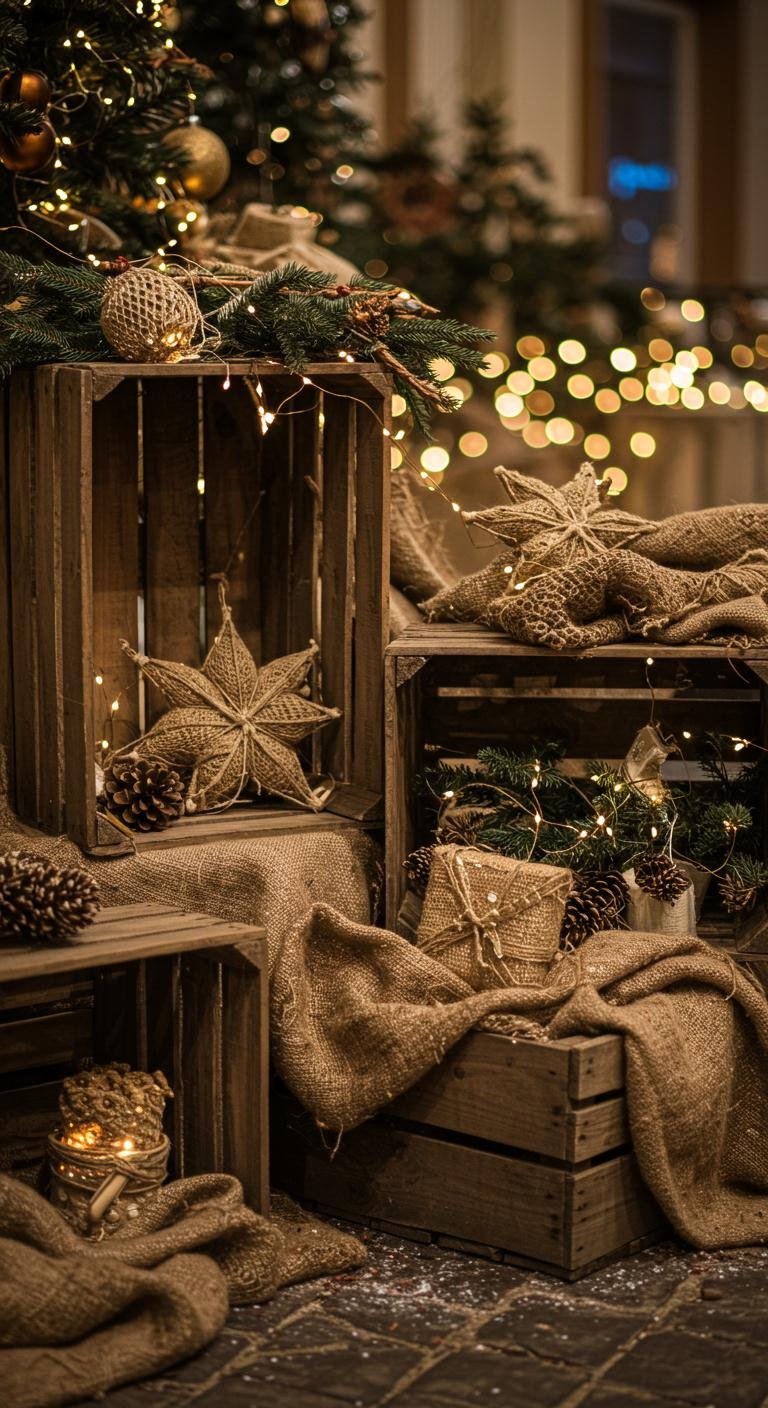 There’s something super grounding about using natural stuff like wood, burlap, and linen in your holiday decorations. Stick to neutral shades—think whites, creams, and soft greens—to keep things peaceful and inviting. A fun idea? Stack wooden crates around as decor and fill glass jars wrapped in burlap with pinecones or fairy lights. It’s that perfect mix of texture and warmth without making your wallet cry.