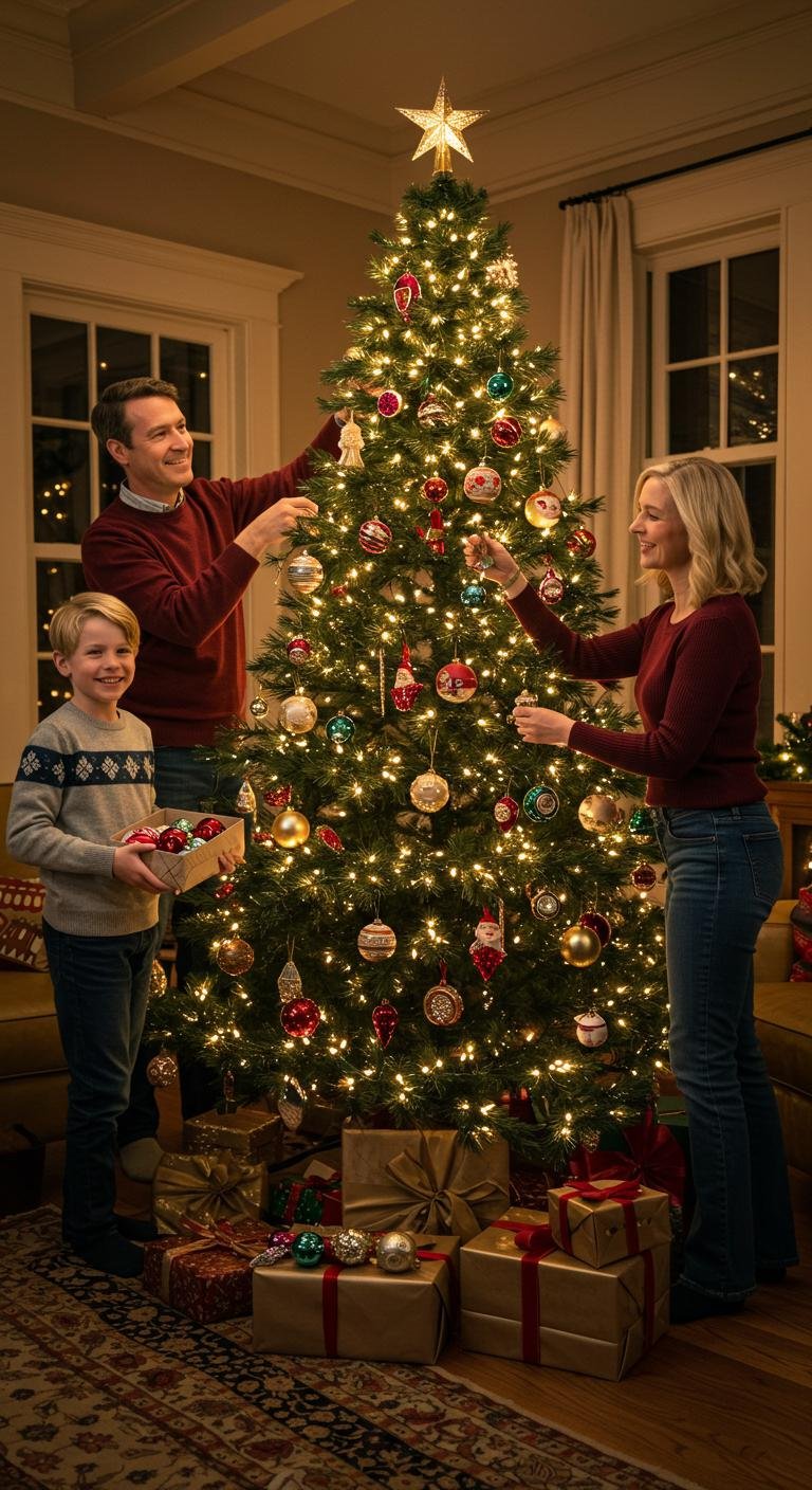 Farmhouse ornaments keep it simple and natural—think jute, burlap, and wooden shapes like stars and hearts. Hosting an ornament-making party is such a fun way to get creative with friends, using wood slices and twine. Or if you’re not feeling the craft vibe, local craft stores usually have tons of affordable, rustic-style ornaments to choose from.