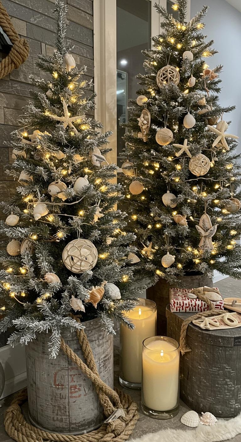 Want a fresh take on farmhouse style? Mix in some country and coastal vibes. Think rope accents and seashell ornaments that add unexpected texture and interest. Making beach-themed ornaments with natural shells is a fun DIY that blends rustic charm with relaxed coastal feels perfectly.