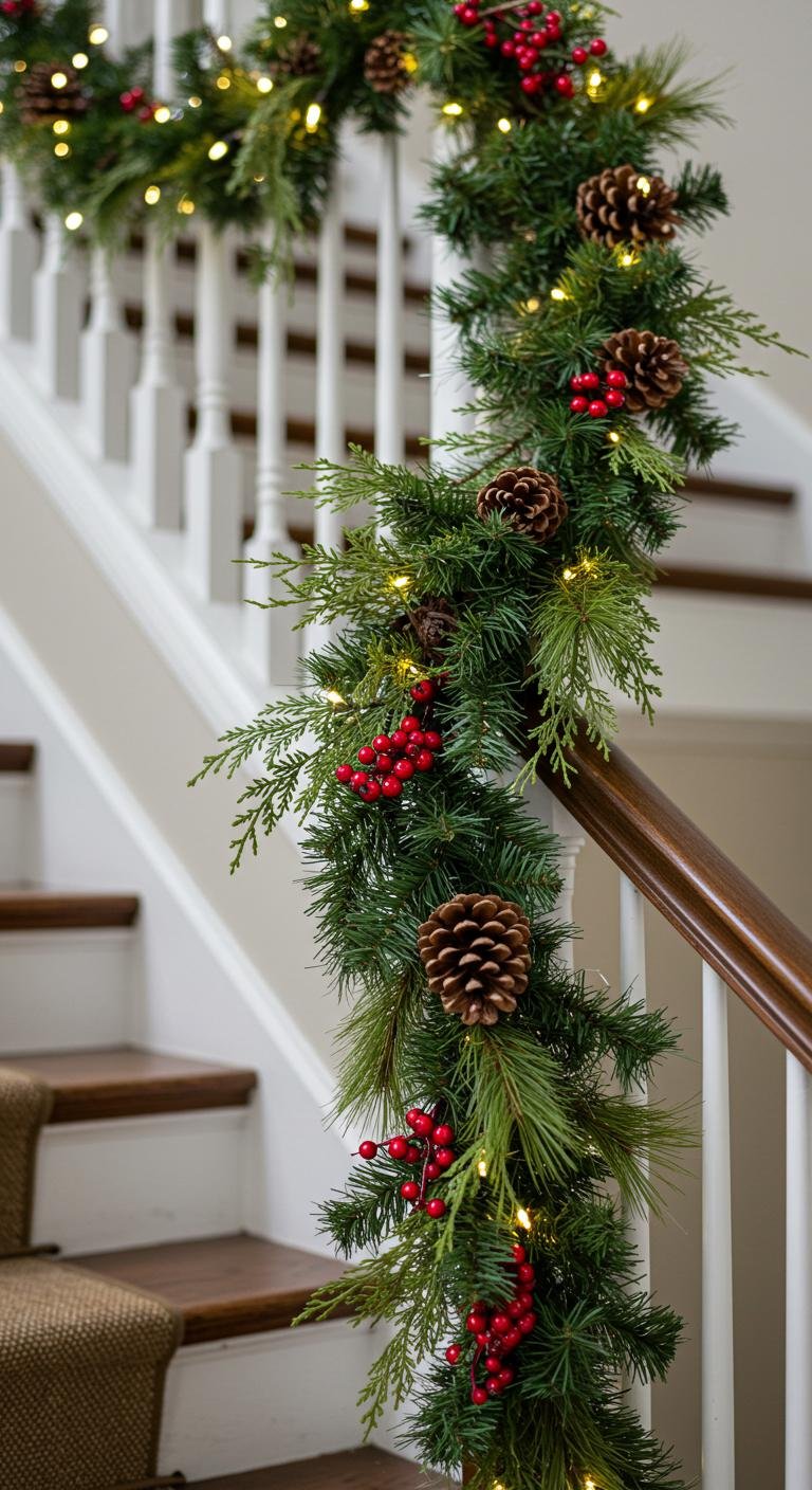 Nothing says Christmas like lush evergreen garlands draped across your mantel or stairs. Add pinecones, berries, and other natural goodies for that classic holiday boost. If you’re the DIY type, try making your own by bundling small branches with twine—perfect as table centerpieces or porch decorations that greet guests with holiday cheer.