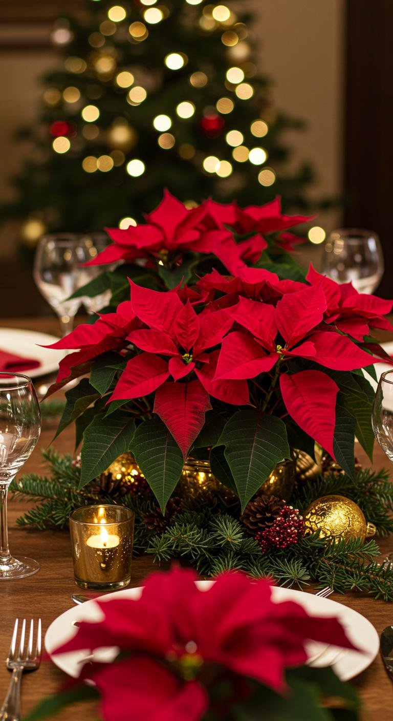 Poinsettia centerpieces bring a vibrant splash of holiday cheer to any table setting, transforming your dining room into a festive wonderland.