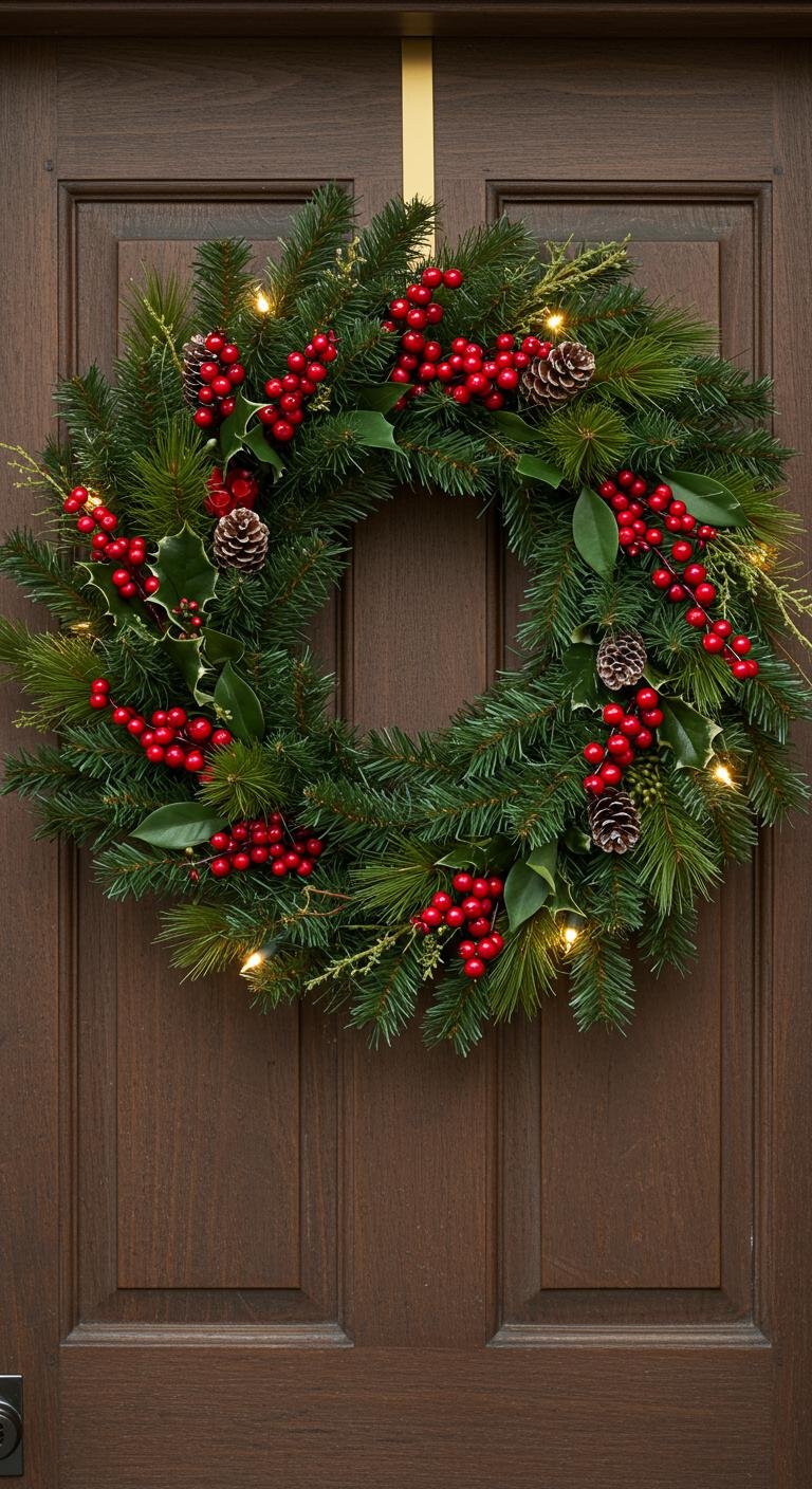 Three vibrant colors come together in evergreen wreaths adorned with berries, creating a stunning focal point for your holiday decor.