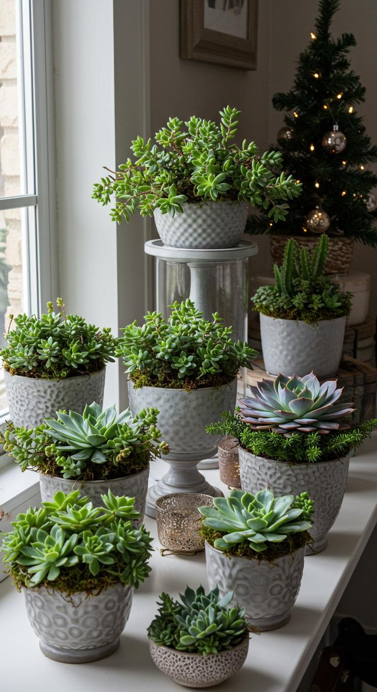 Succulent holiday decorations bring a rejuvenating twist to traditional seasonal décor, enchanting your space with unique charm.
