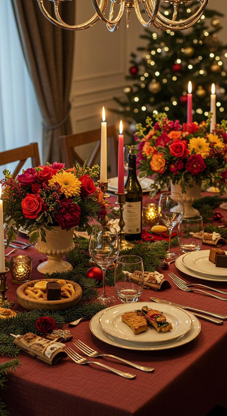 Transform your dining experience this holiday season with stunning floral arrangements that capture the spirit of festivities.