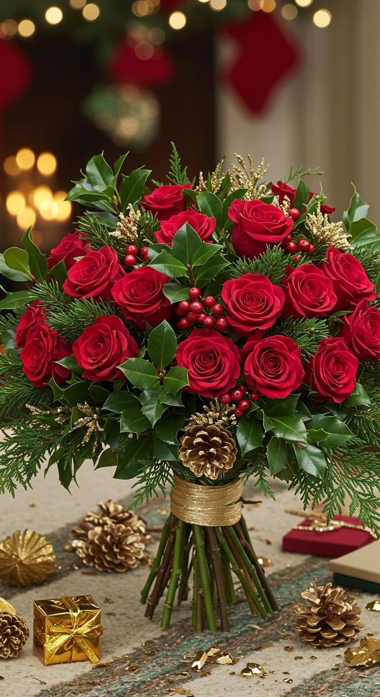 Embrace holiday bouquet styles that exude warmth and nostalgia. Traditional floral arrangements, featuring roses, holly, and evergreen, create stunning focal points that invite joy.