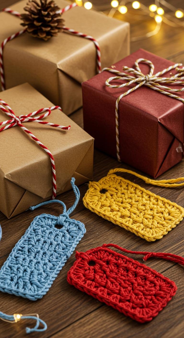 Here’s a smart little idea: crochet gift tags that your loved ones can also use as ornaments! Simple shapes like stars, hearts, or trees work perfectly and add a fun surprise to any present. Bright yarn colors make these tags pop, and since they’re quick to make, you can whip up a bunch in no time. Adding strings or ribbons for hanging makes them a breeze to attach and reuse. It’s a neat way to add a personal touch and keep the holiday spirit going year after year.