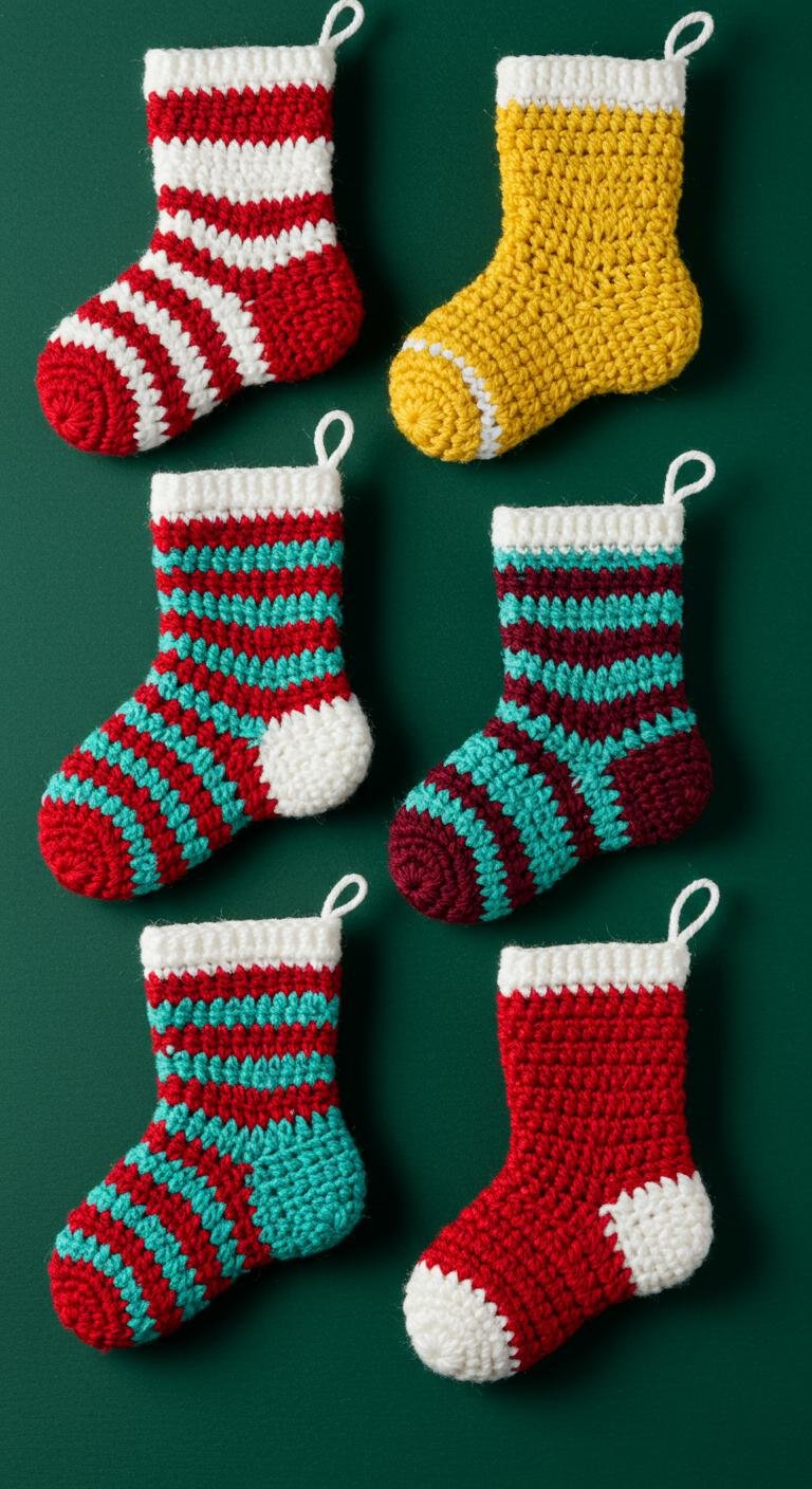 There’s something so charming about crochet Christmas sock ornaments. They’re small, fun, and quick to whip up. Using all kinds of yarn colors and patterns — stripes, polka dots, or even stitched names — gives each sock personality. They look great hanging on the tree or used as little gift card holders, mixing cozy vibes with practical holiday cheer.