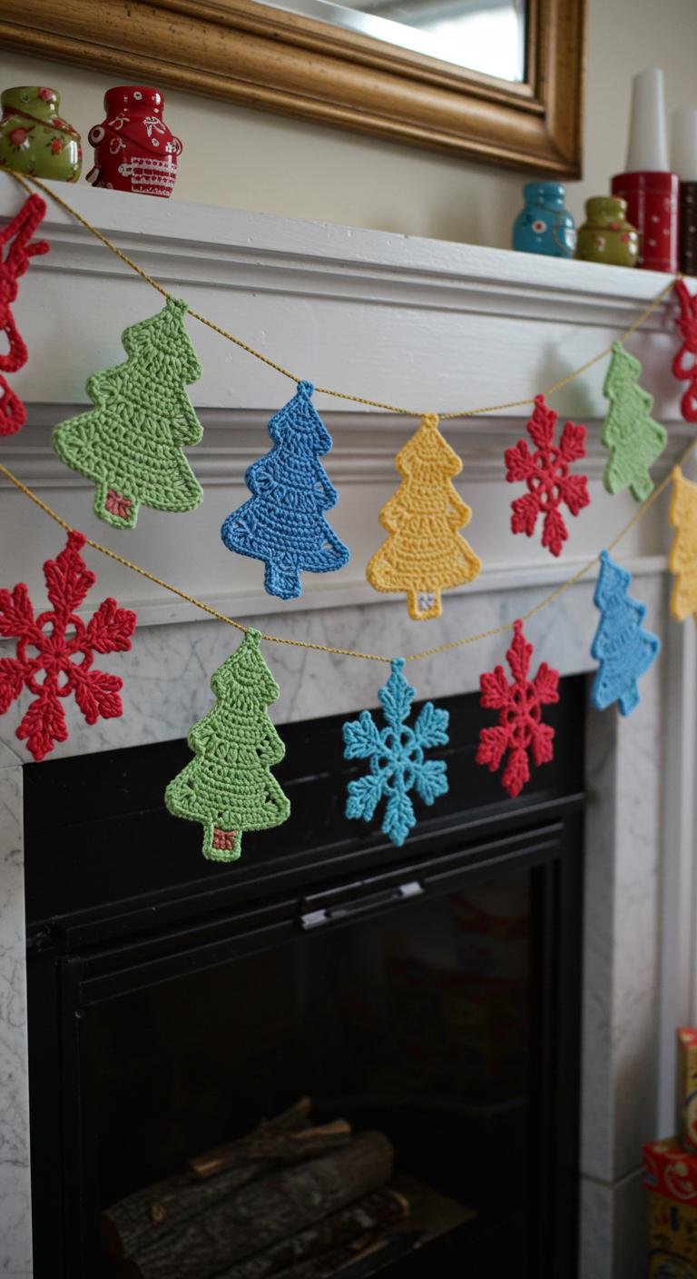 Want to add some handcrafted charm that ties your whole holiday space together? A crochet garland is the answer. Mix and match shapes like tiny trees, snowflakes, and candy canes to keep things visually fun. Pick colors that fit your holiday vibe and use scraps to keep it budget-friendly. Just decide how long you want it and connect everything with an easy chain stitch. Draped over a fireplace, doorway, or even your tree, this garland is cozy and definitely invites those good festive feels.