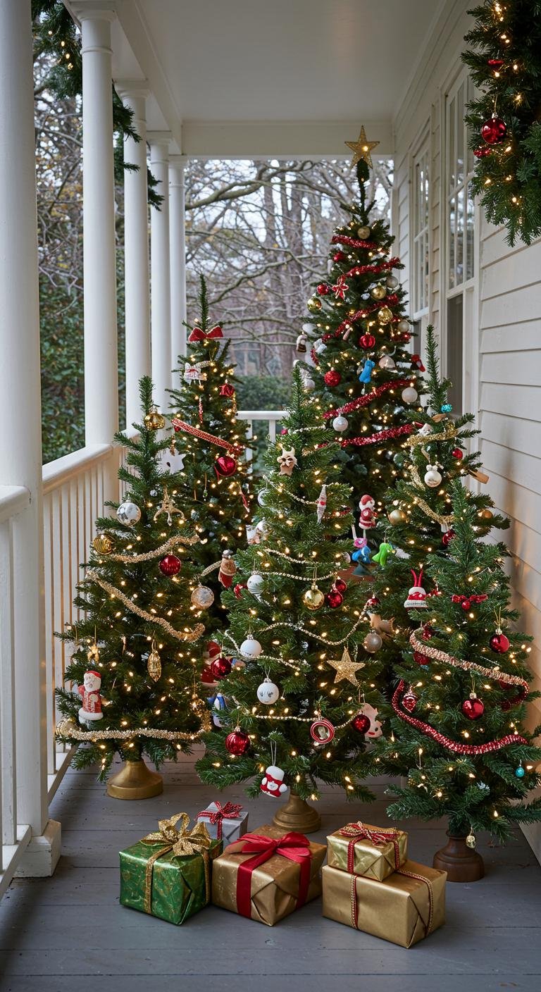 Who says big is always better? Small Christmas trees grouped on your porch steps or nestled in planters can make a stylish statement. Decorate each little tree with matching ornaments or wrapping paper bases to keep things cohesive. Feeling crafty? You could make mini trees from cardboard or painted pinecones for a fun weekend activity. It’s a playful way to show off your personality and bring festive joy on a smaller scale.
