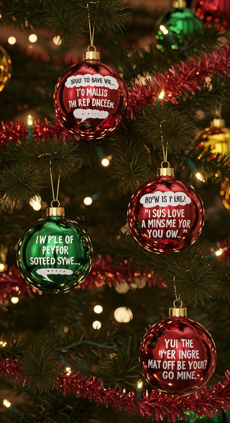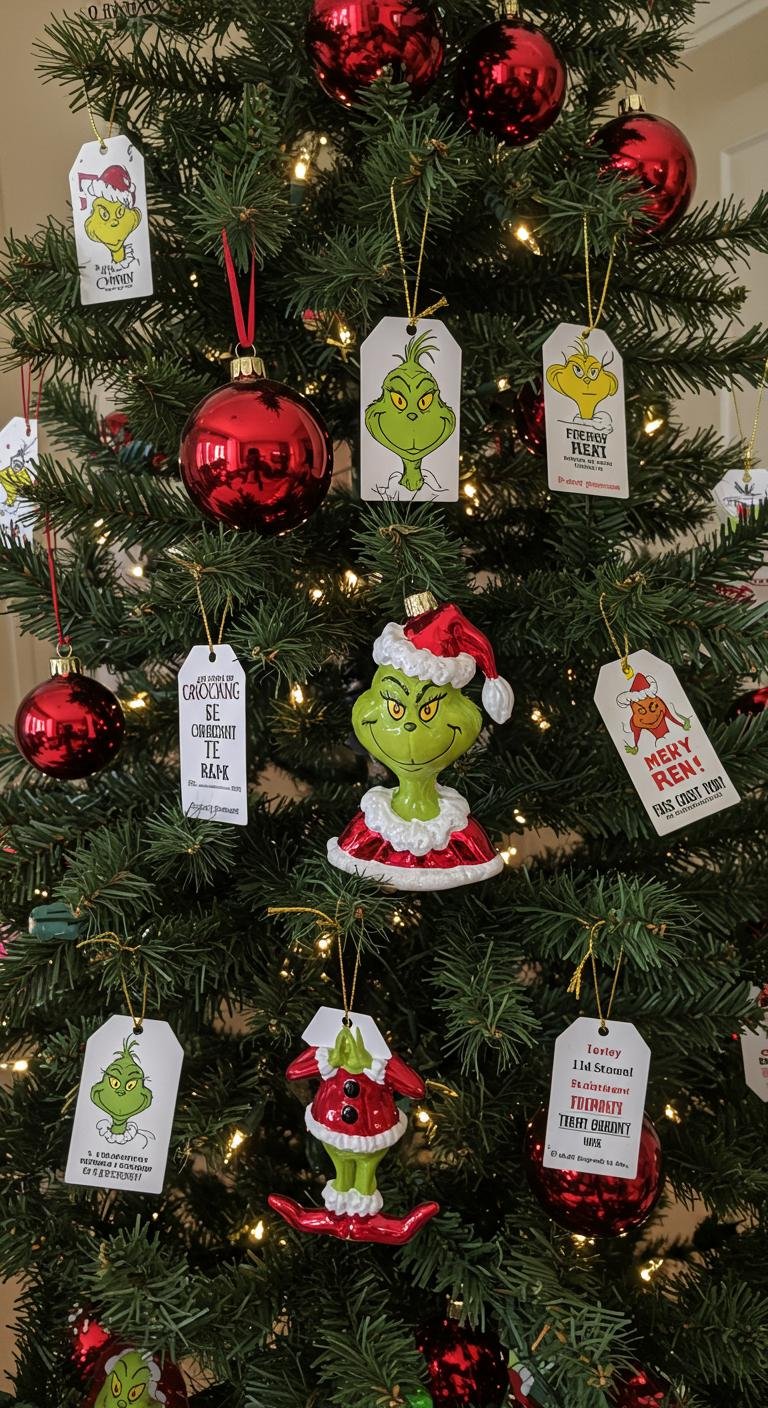 Want to sneak a bit of humor onto your tree? These funny Grinch quote baubles are where it’s at. Whether you buy them or DIY with clear ornaments filled with shiny ribbons, writing cheeky lines like “You’re a Mean One, Mr. Grinch” right on the outside definitely gets people giggling. Scatter a bunch all over the branches or hang them in little clusters for that playful pop of festive spirit.