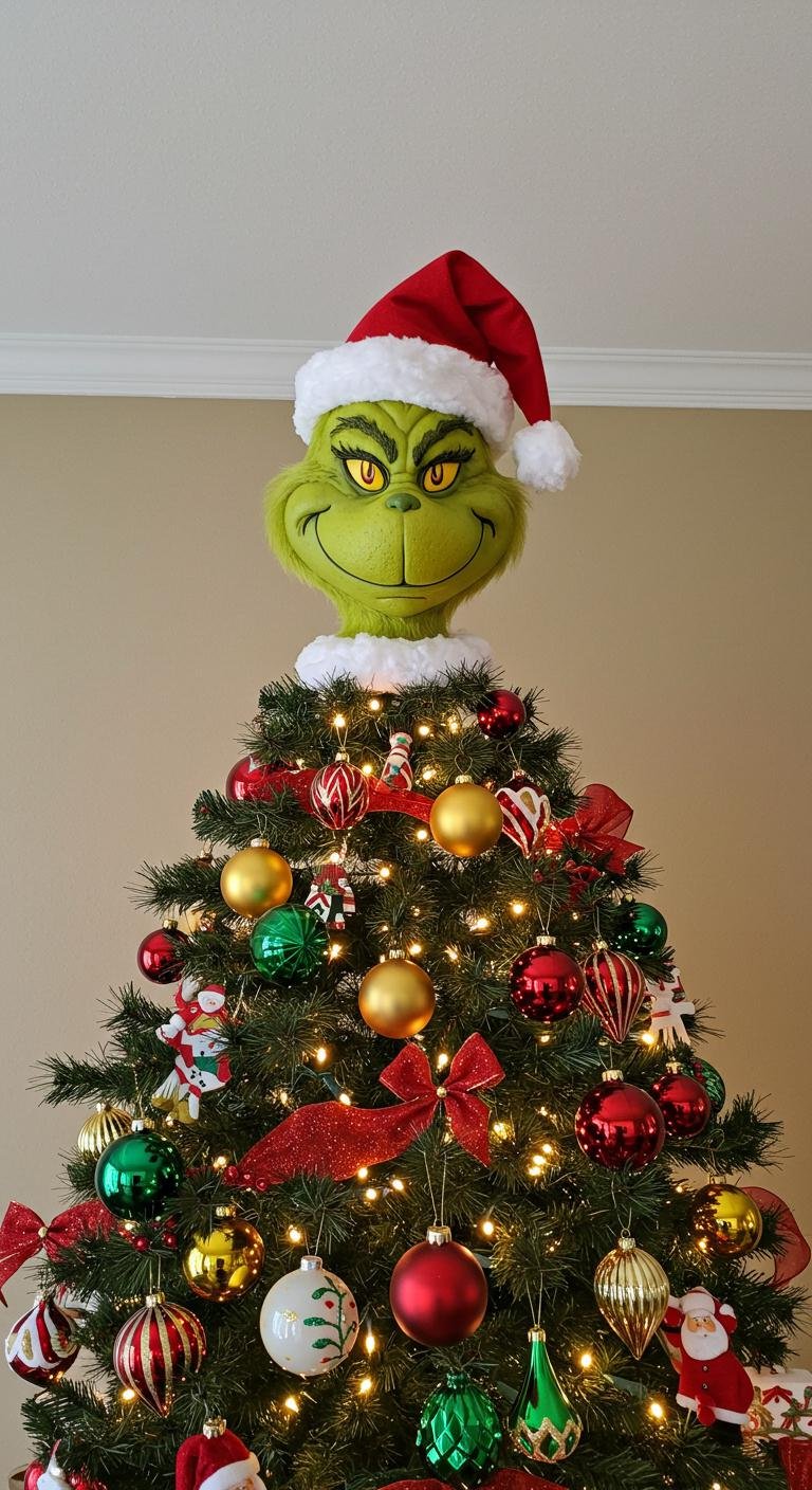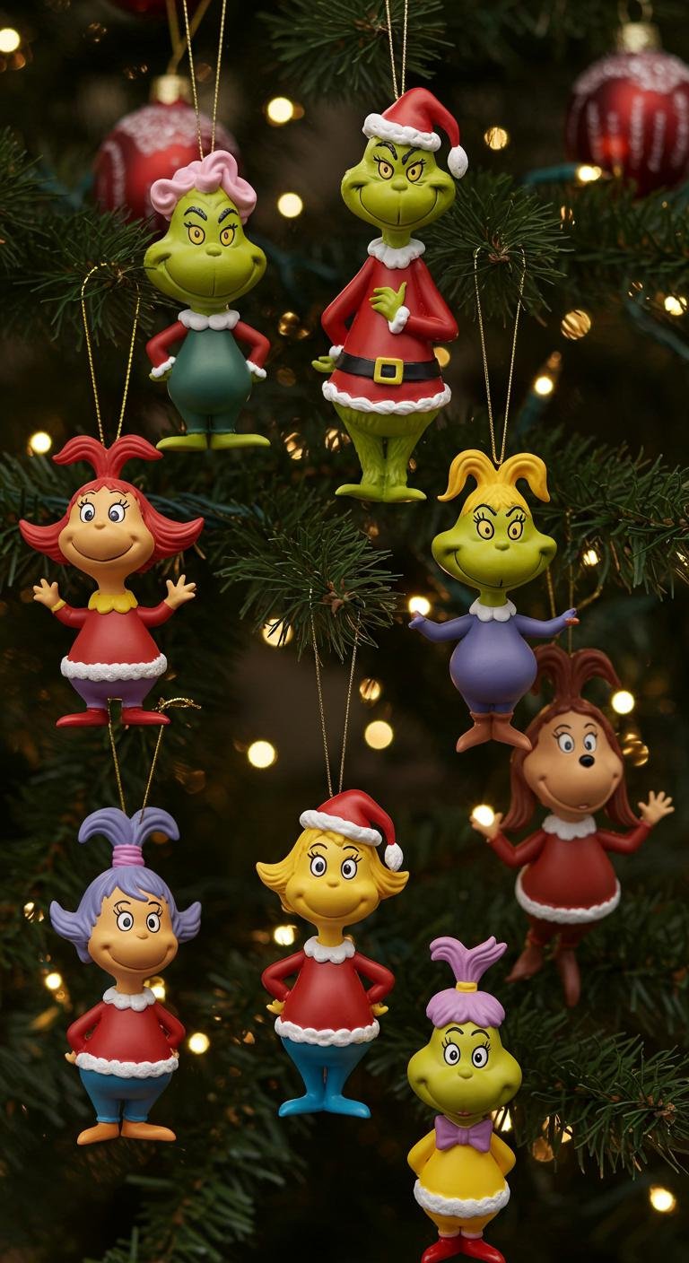 Want to add a splash of Whoville charm? Create some Minion of Grinch ornaments with felt, cardstock, or clay. Make each one unique by playing around with different expressions and outfits. These cheerful little characters add a fun, lively twist to your tree that perfectly balances traditional decorations with your family’s special flair.