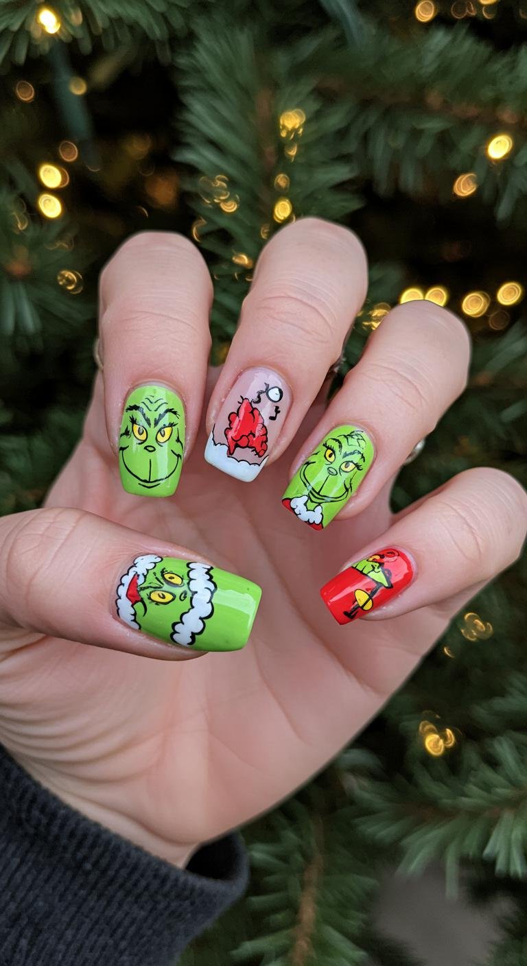 Who says holiday spirit is just for the tree? Rock some adorable Grinch-themed nail art—think tiny Grinch faces, green hues, and festive patterns. It’s a fun way for the whole family to get into the mood, and you can even turn it into a little nail-painting party. Trust me, it’s harder to stop staring at your nails than the twinkling lights!