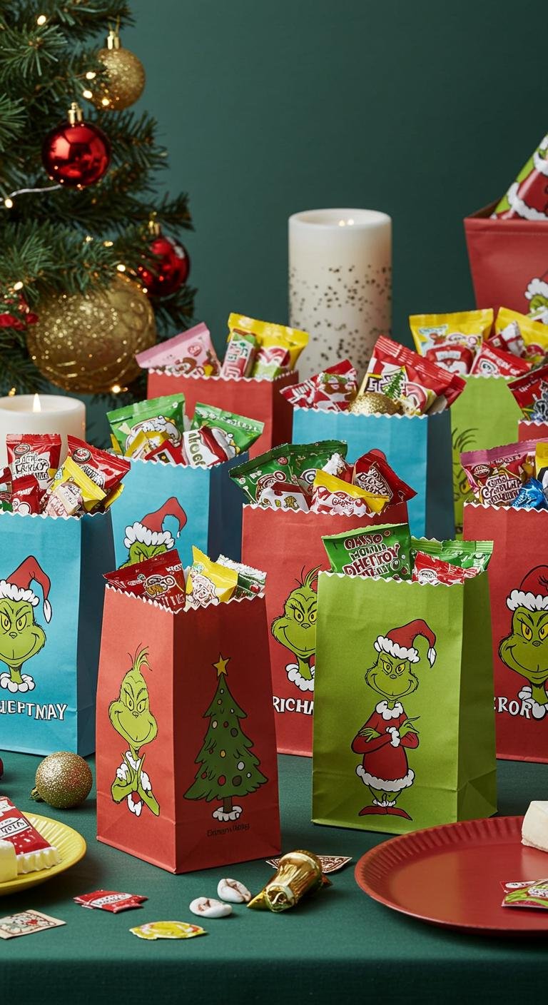 Hosting a holiday shindig? Hand out some Grinch-themed party favors to keep the cheer going. Think mini plush Grinch toys, green and red candies, or fun little gadgets with a Grinch twist. Wrap them up in cute bags decorated with Grinch illustrations to keep things easy on the budget but big on smiles.
