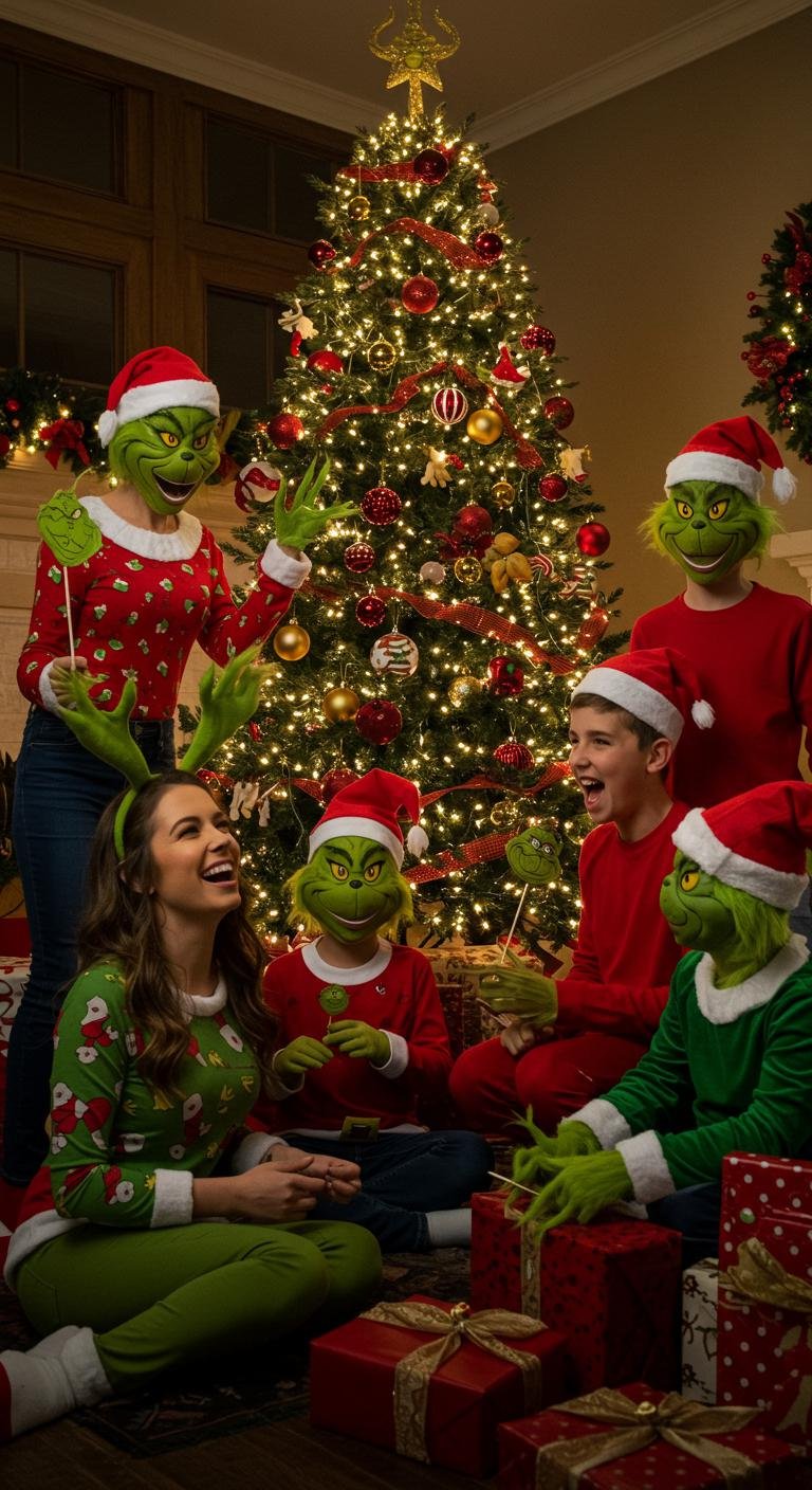 How about capturing your holiday spirit in a fun way? Dress up the fam in Grinch-themed outfits—think green hats, Santa suits, and goofy faces. Pose in front of your fully decked-out Grinch tree and you’ll end up with memories that last way past the season. Plus, these pictures make for adorable holiday cards that friends and family will totally adore.