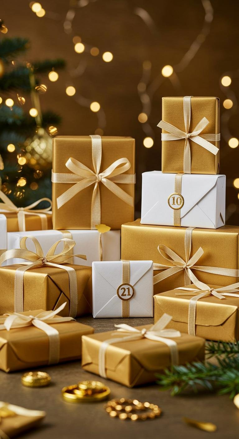 To make your countdown to Christmas even more magical, consider incorporating a gold and white advent calendar that serves as both a charming decoration and a delightful daily surprise.