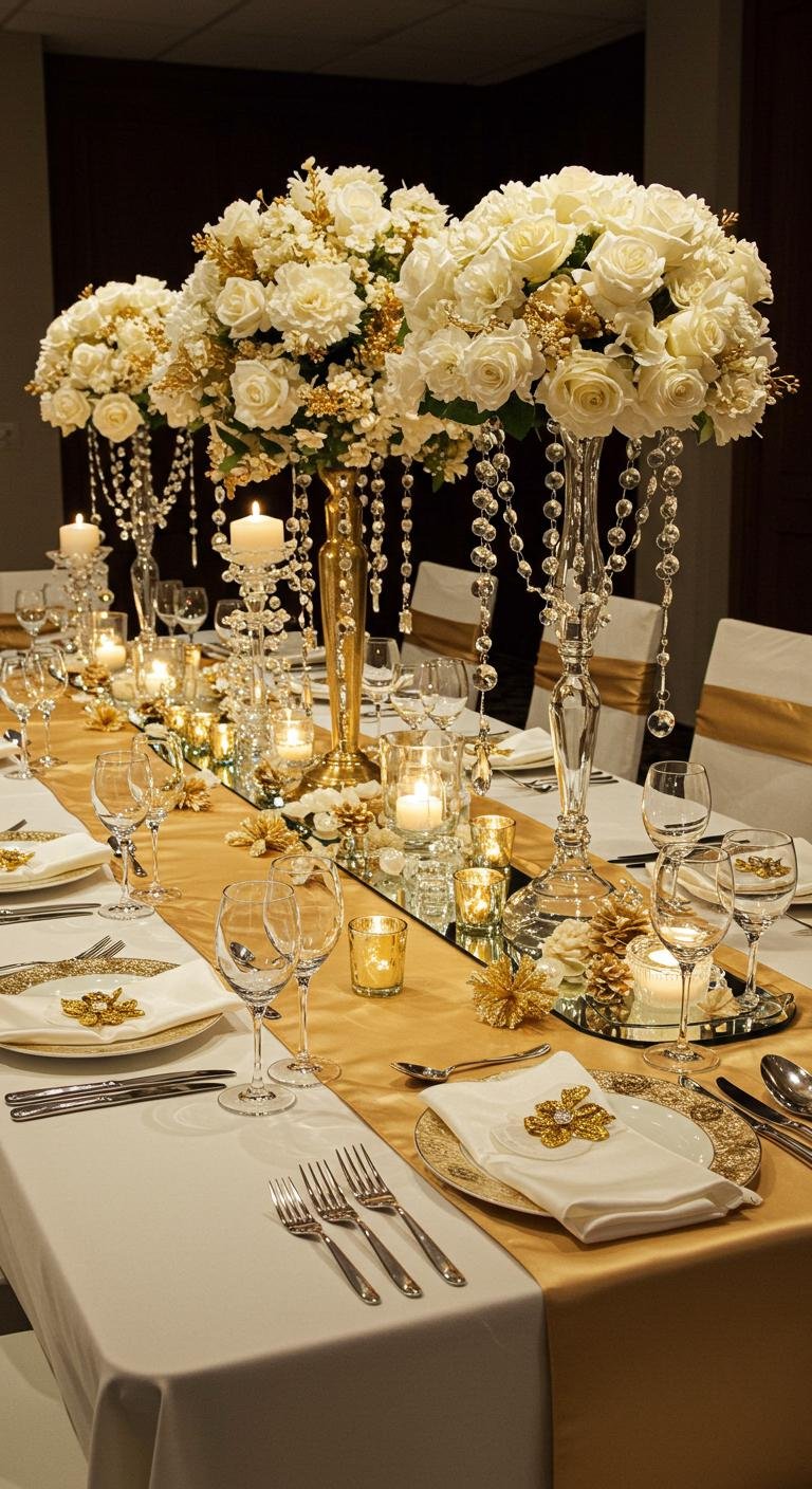 Setting the table with lavish gold and white centerpieces instantly elevates your holiday gatherings, creating a focal point that mesmerizes guests.