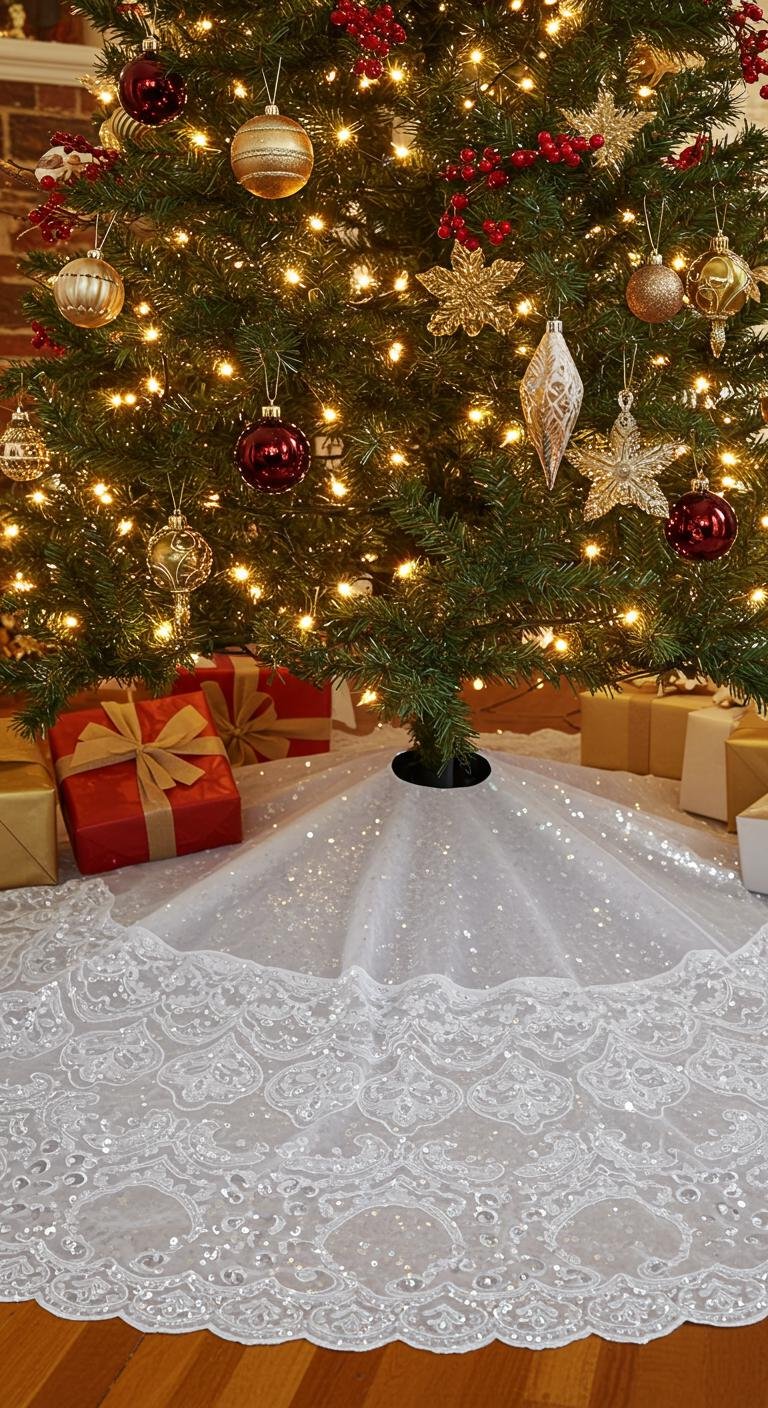 Transform your Christmas tree’s base into a vision of elegance with ethereal white tree skirts that drape gracefully around the trunk.