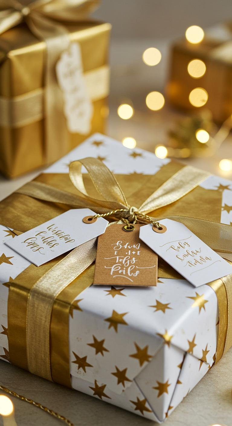 Add personalized gift tags adorned with delicate calligraphy, enhancing the charm.