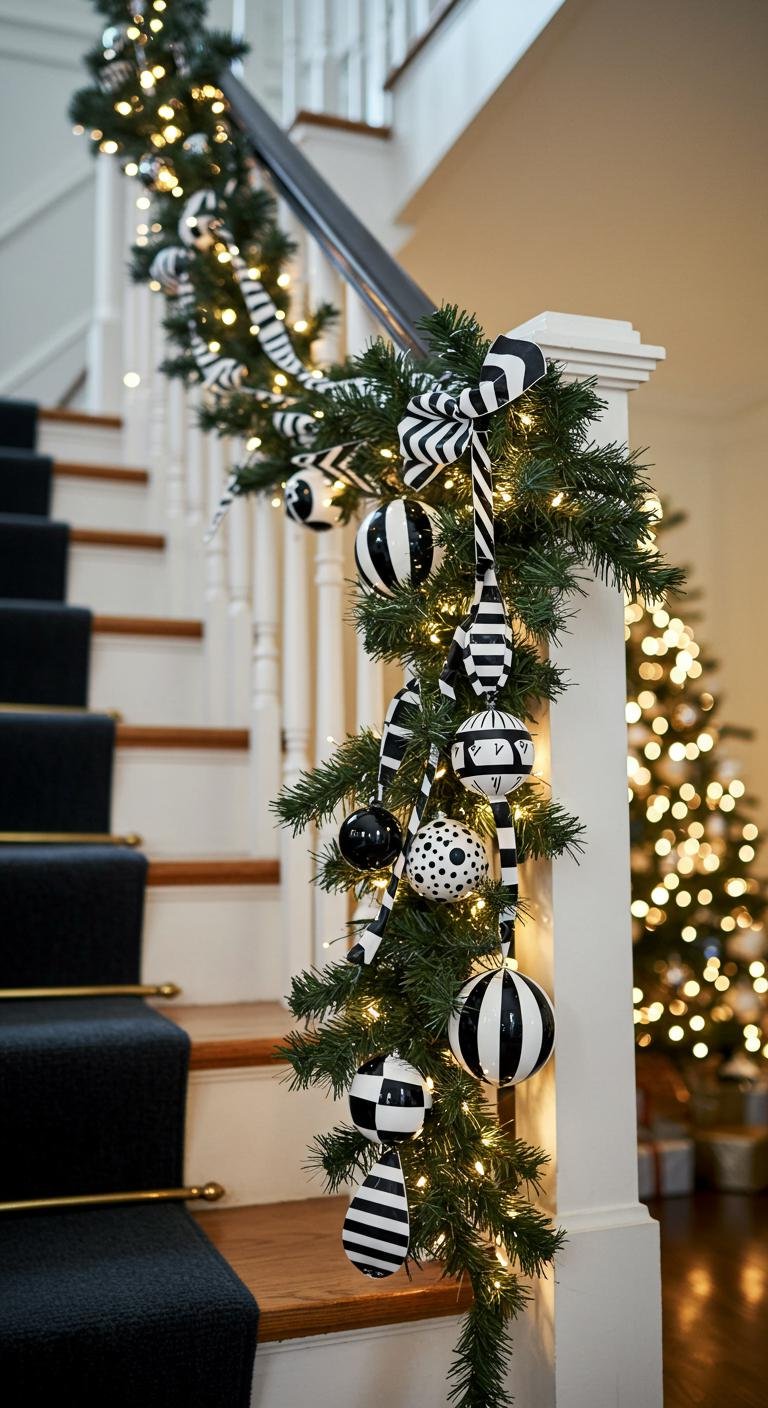 Nothing grabs attention quite like a striking black and white garland that adds a dramatic touch to your holiday decor.