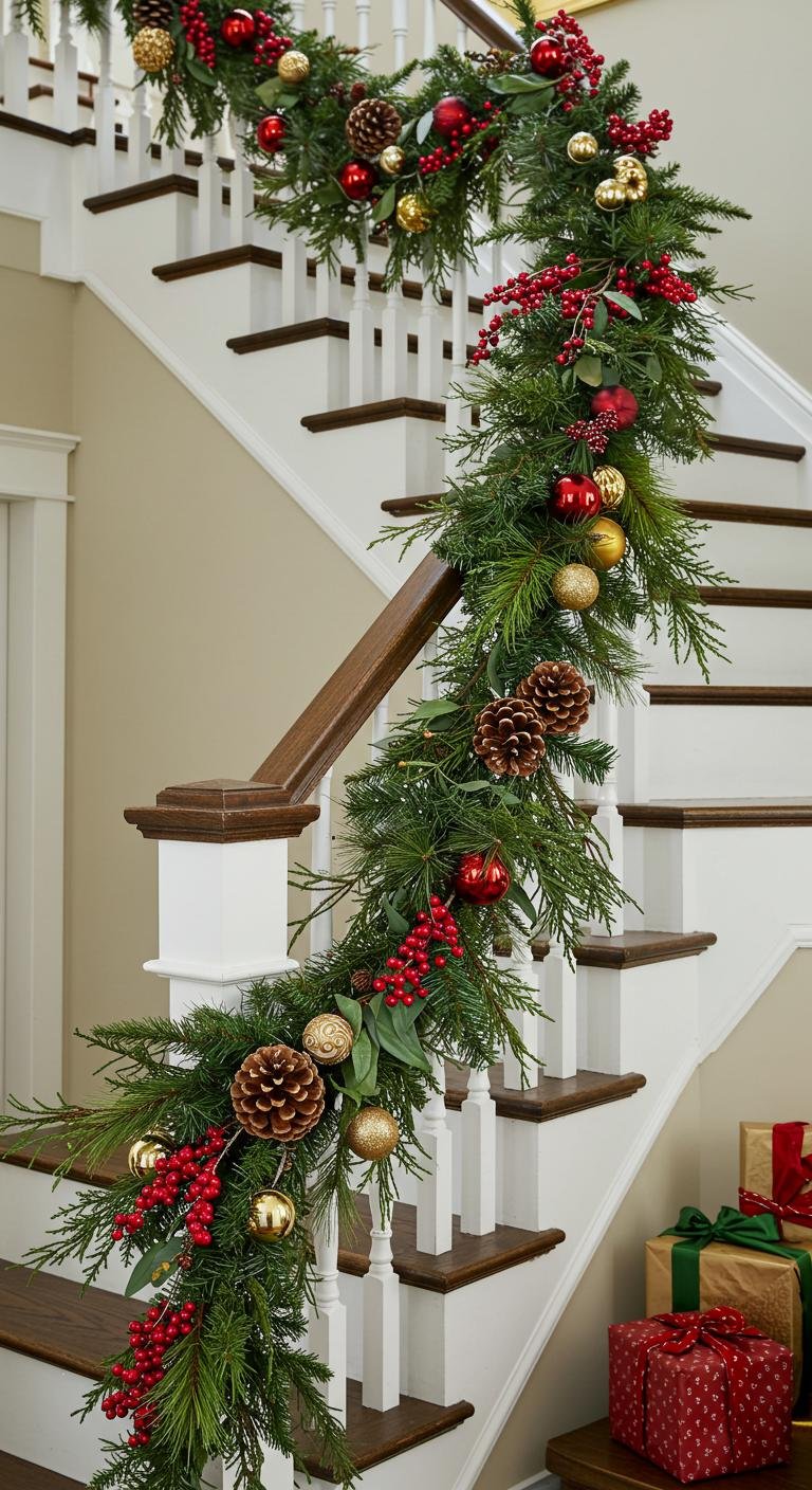 Wrap your staircase in a luscious embrace of greenery with a classic garland wrap that instantly elevates your holiday decor.